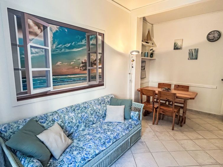 "Baia dei Sogni", 2-room apartment 40 m2 on 1st floor. Comfortable and cosy furnishings: living/dining room with 1 sofabed, 1 pull-out bed, TV and fan. Exit to the balcony. 1 double bedroom. Small kitchen (4 hot plates, oven, kettle, microwave, electric coffee machine). Shower/bidet/WC.