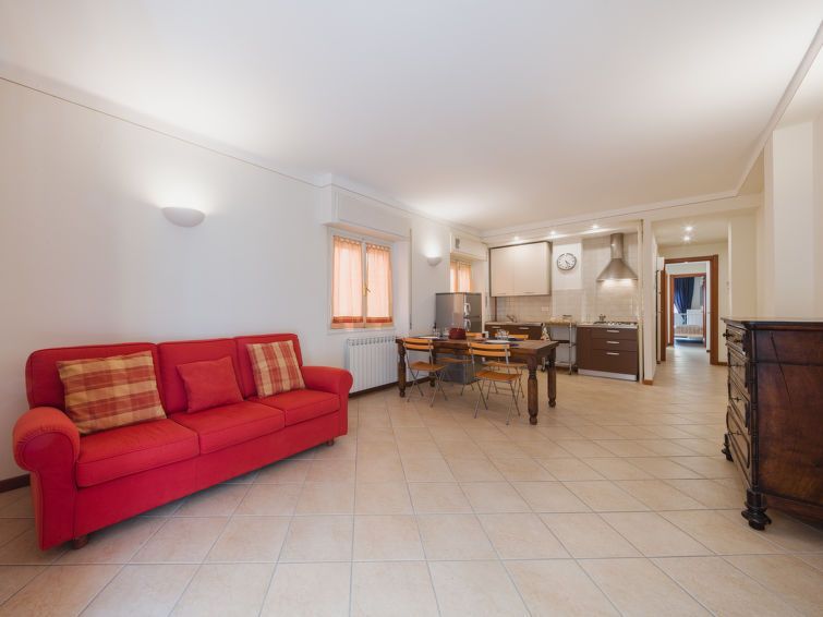 "Gabriella", 3-room apartment 80 m2 on 2nd floor. Comfortable furnishings: large living/dining room with TV and fan. 1 double bedroom with 1 bed (190 cm, length 80 cm), 1 double bed (190 cm, length 160 cm), fan. 1 small room with 1 bed (190 cm, length 80 cm). Kitchenette (4 hot plates, microwave, electric coffee machine).