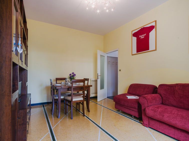 "Ghiba", 2-room apartment 50 m2 on 1st floor. Practical furnishings: living/dining room with 1 double sofabed and TV. Exit to the balcony. 1 double bedroom. Small kitchen (4 hot plates, oven, kettle, electric coffee machine). Shower/bidet/WC. Gas heating. Heating available only from 01.