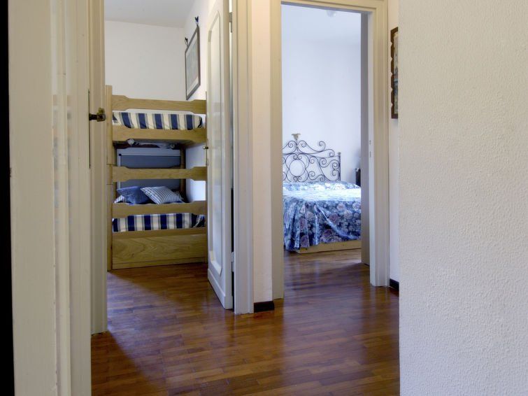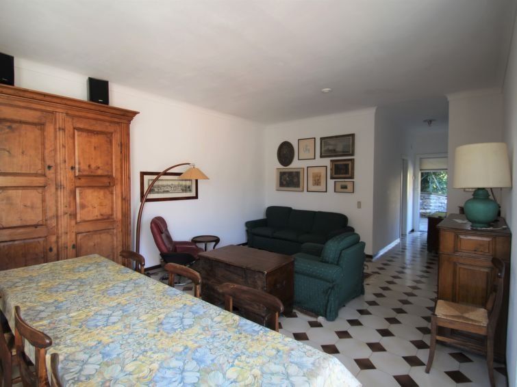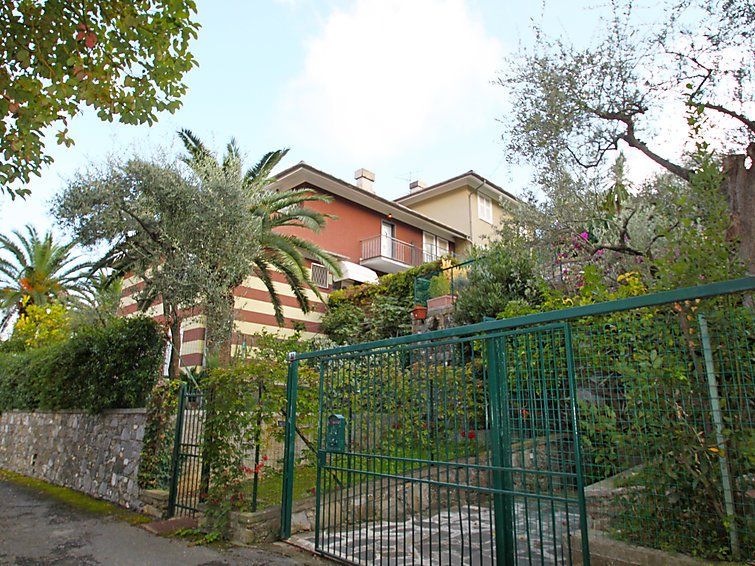 1 room with 2 bunk beds, 1 room with a bed of around 160 cm, 1 large balcony, 1 terrace and small garden. The furnishings are excitingly colorful, some of them fourth hand. There is actually no kettle, but everything else is available. The car can be locked on the property. The house is on a slope in a quiet residential area, reached via a narrow street. The beach can be reached almost faster via a steep staircase, there is 1 small free section.