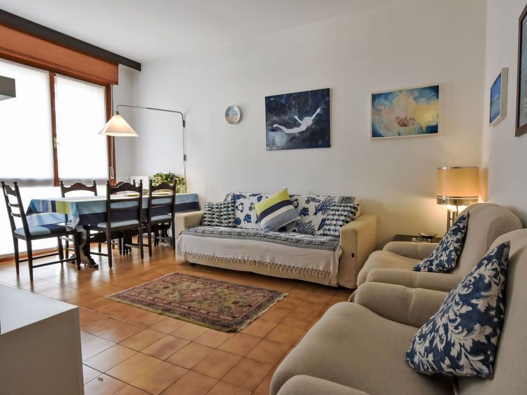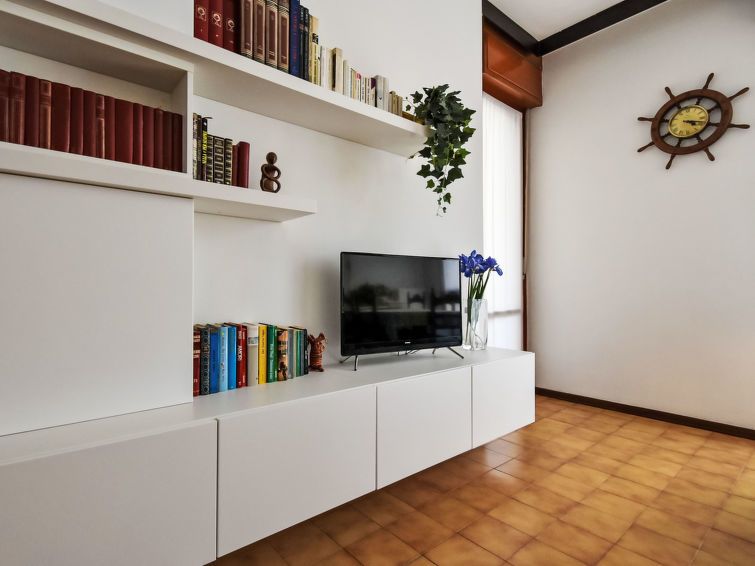 2-room apartment 75 m2 on 2nd floor, south-east facing position. Bright, practical and comfortable furnishings: entrance hall. Living/dining room with 1 double sofabed, dining table and TV (flat screen), radio, CD-player, hi-fi system and air conditioning. Exit to the terrace. 1 double bedroom with air conditioning.