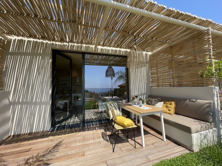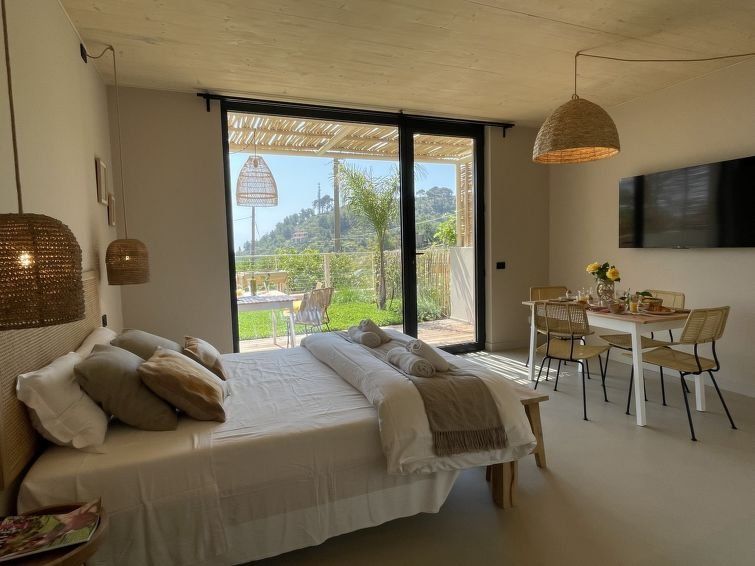 "Casa Mia 5", 2-room apartment 42 m2, on the ground floor. Comfortable and tasteful furnishings: living/sleeping room with panoramic window with 1 double bed (1 x 160 cm), satellite TV. Exit to the garden, to the terrace. 1 room with 1 double bed (1 x 160 cm), satellite TV. Kitchenette (oven, 2 induction hot plates, toaster, kettle, electric coffee machine, Capsules for coffee machine (Nespresso)) with dining table, dining table.