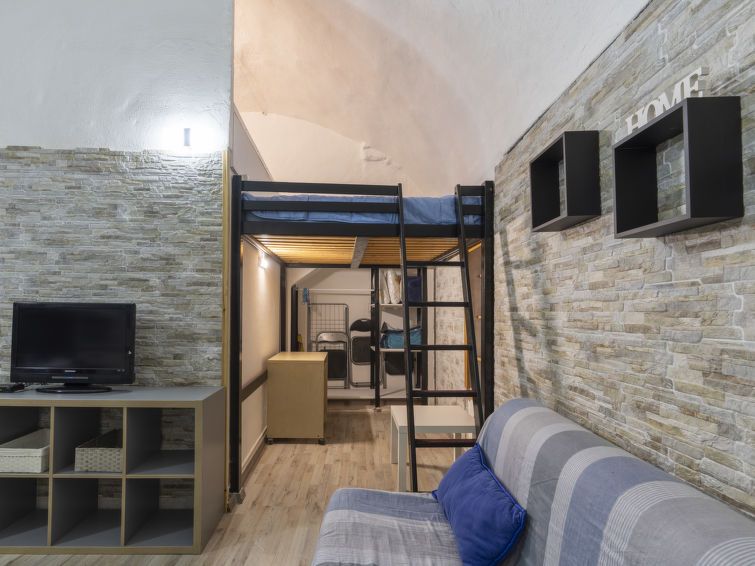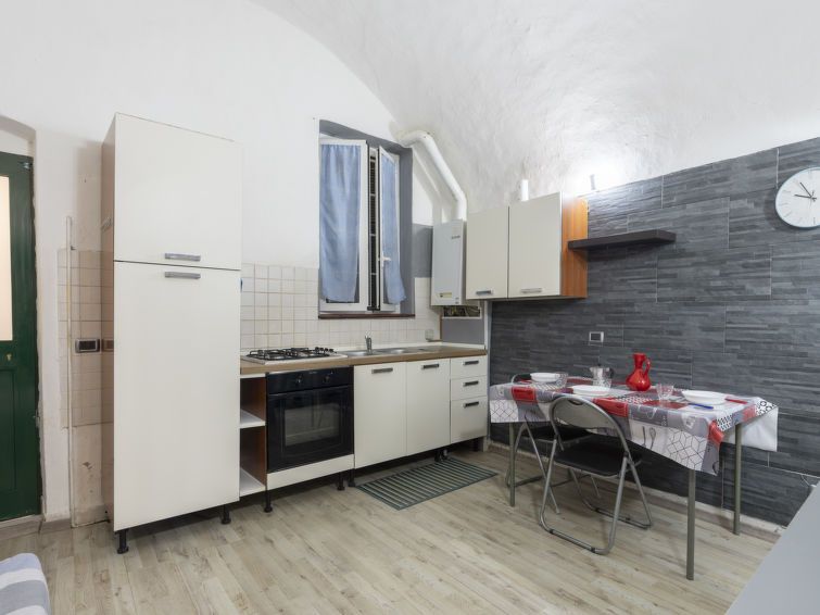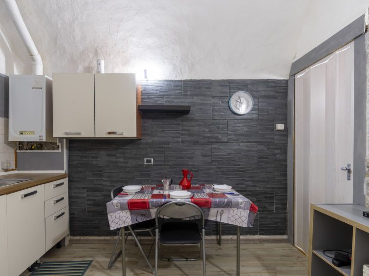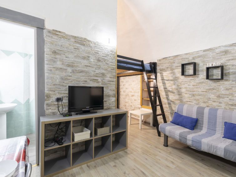 "Kicca", 1-room apartment 30 m2, on the ground floor. Beautiful and cosy furnishings: living/dining room with 1 sofabed (140 cm, length 200 cm), TV. Open gallery with 1 double bed (160 cm, length 200 cm). Kitchenette (oven, 4 gas rings). Shower/bidet/WC. Gas heating. Heating available only from 01.