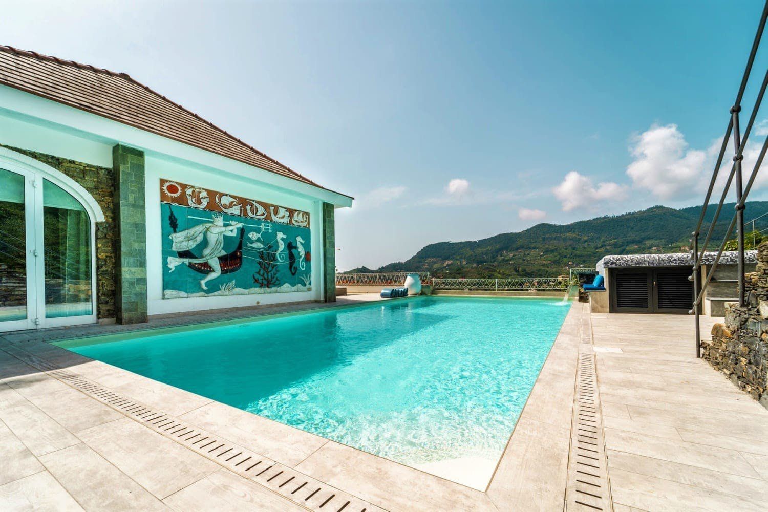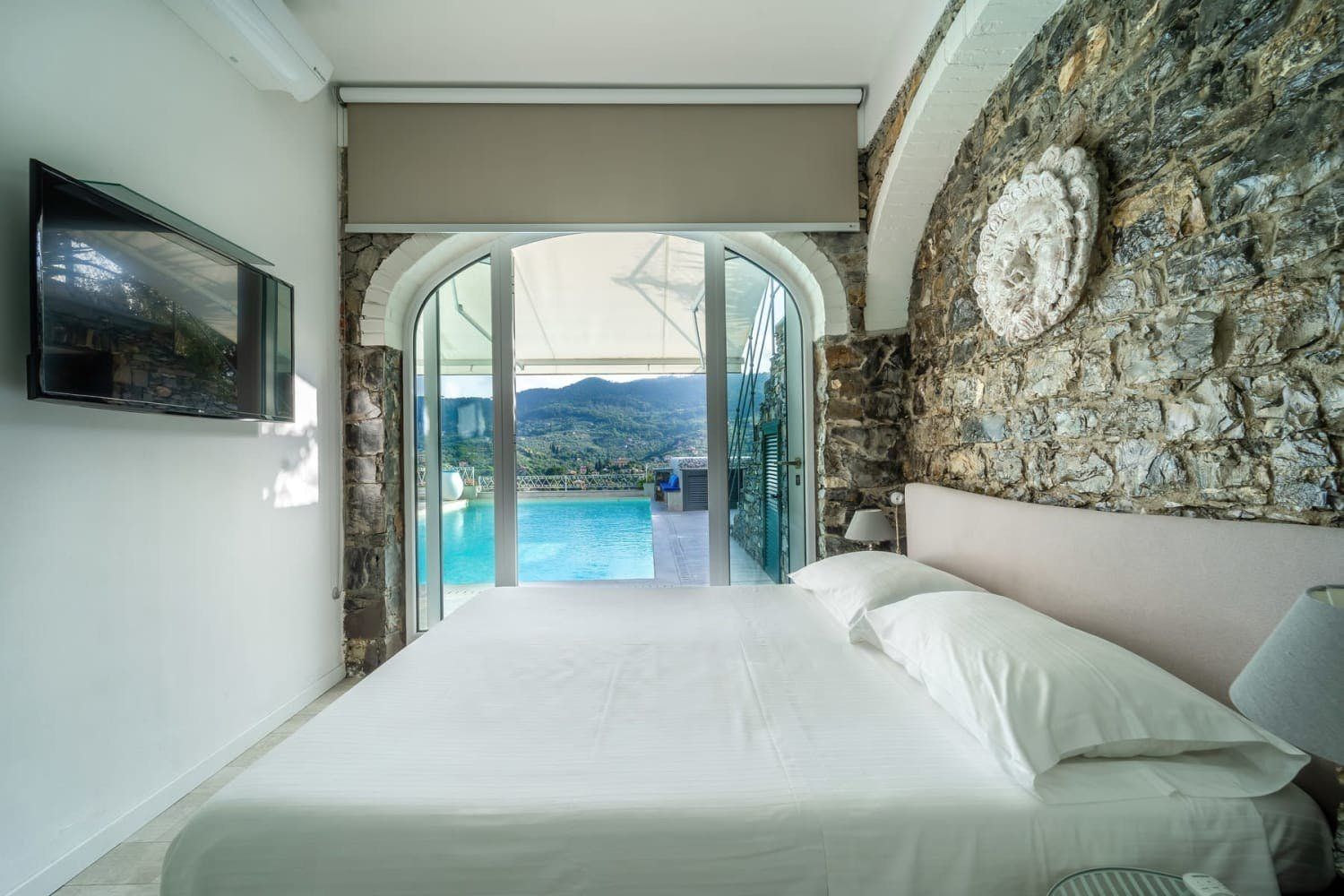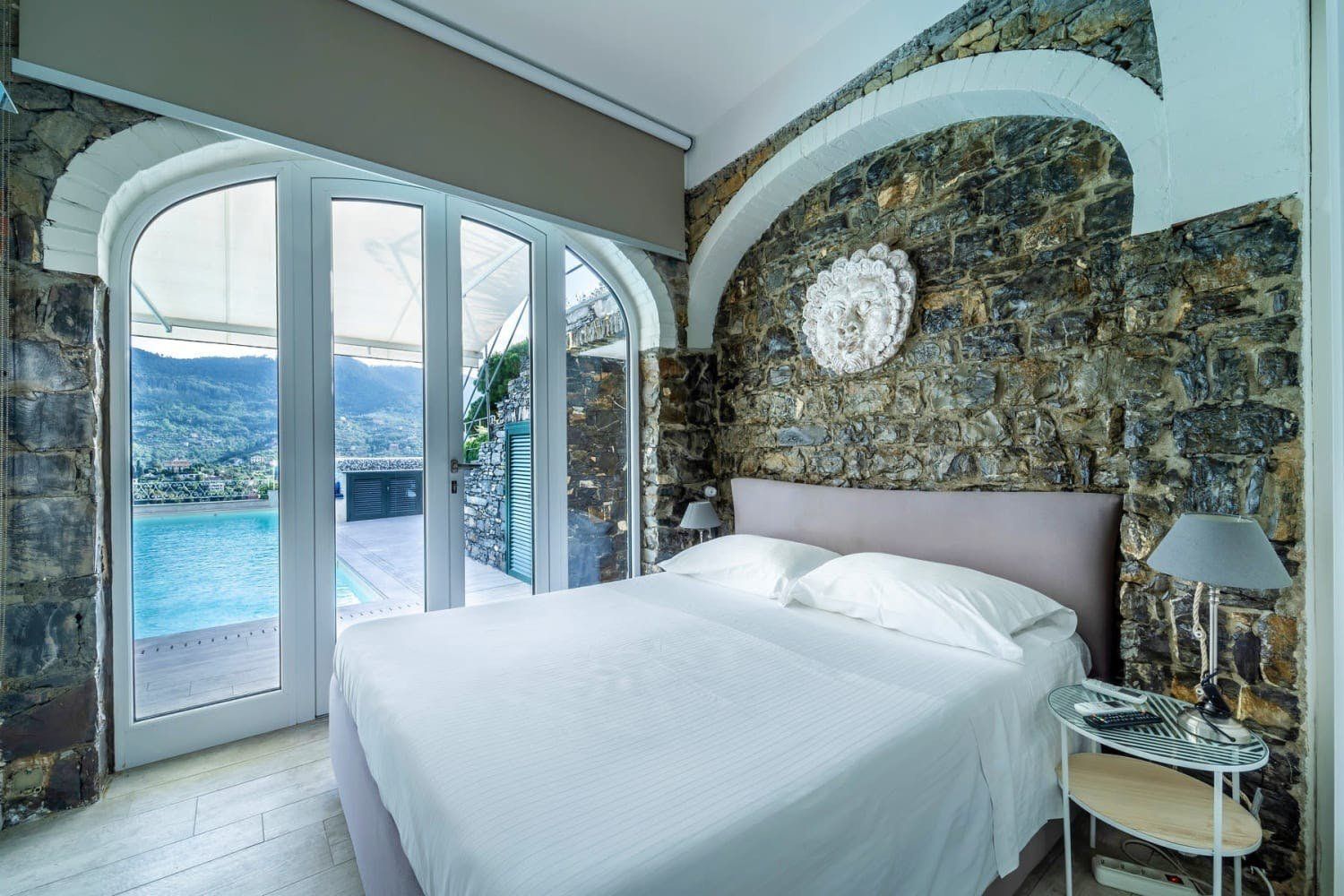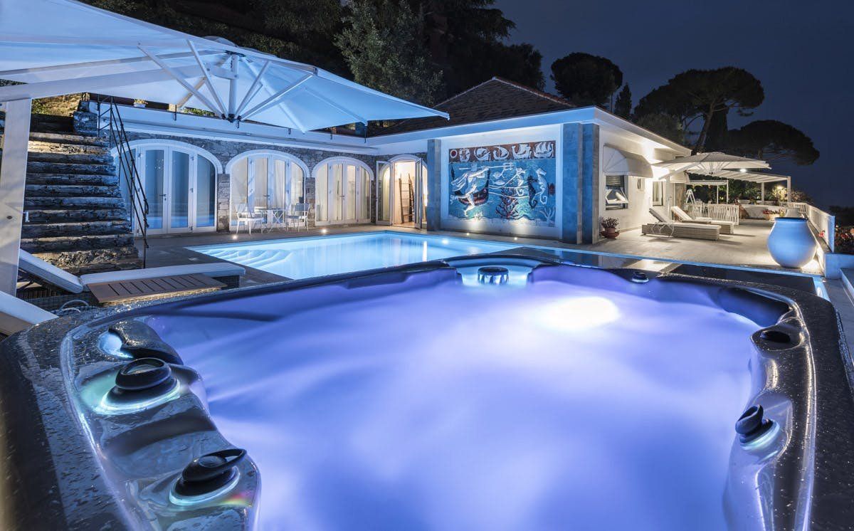 Perched on a hilltop above Santa Margherita Ligure, this villa puts you on the route of the Cinque Terre – five towns that cluster rainbow-bright around coves and harbours. It’s a six-minute walk into the charming town centre for meals on the waterfront, just remember it’s a steep walk back up the hill. But the views are worth it – gaze out over the rooftops and shimmering sea from the sprawling terrace. It’s all about dining, reclining and unwinding in the pool or hot tub out here. Two kitchens (one indoors and one covered outdoors) will keep the chef of the group happy and sliding open the glass doors blends the terrace with the huge, open living room.