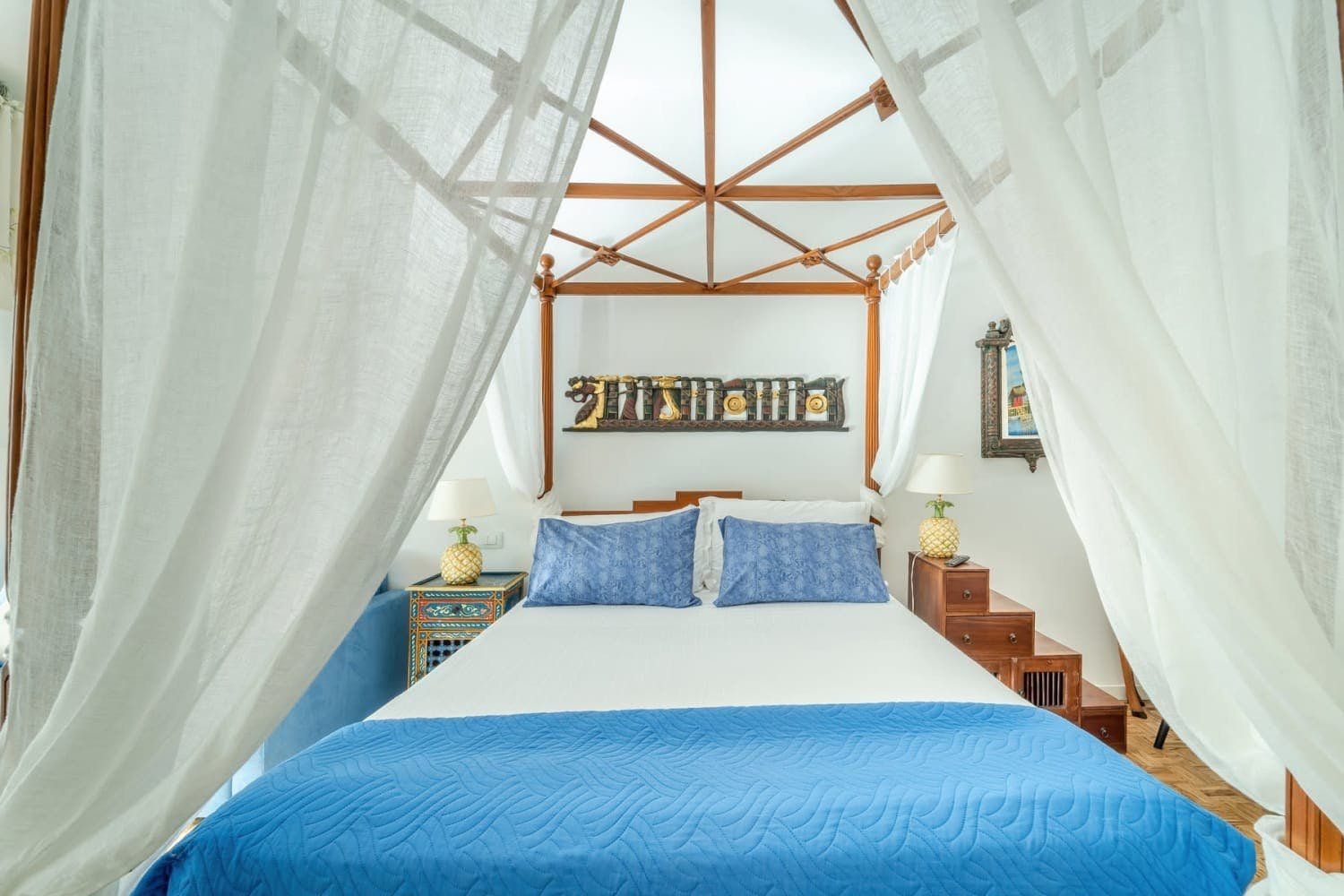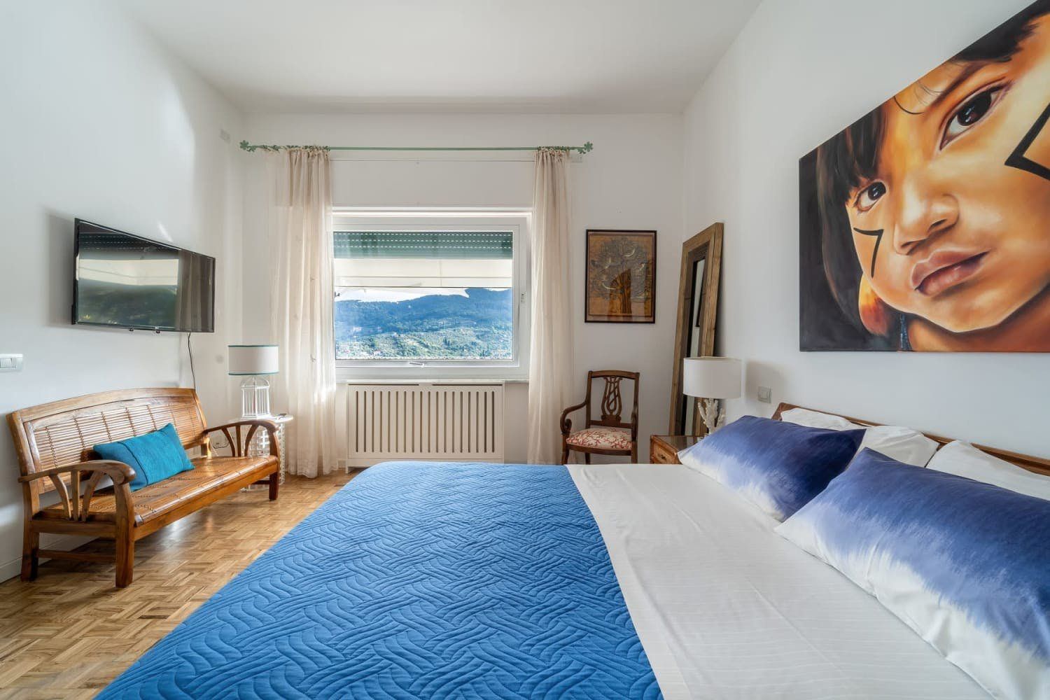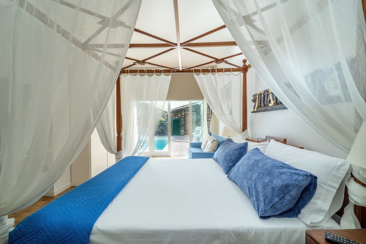 Perched on a hilltop above Santa Margherita Ligure, this villa puts you on the route of the Cinque Terre – five towns that cluster rainbow-bright around coves and harbours. It’s a six-minute walk into the charming town centre for meals on the waterfront, just remember it’s a steep walk back up the hill. But the views are worth it – gaze out over the rooftops and shimmering sea from the sprawling terrace. It’s all about dining, reclining and unwinding in the pool or hot tub out here. Two kitchens (one indoors and one covered outdoors) will keep the chef of the group happy and sliding open the glass doors blends the terrace with the huge, open living room.