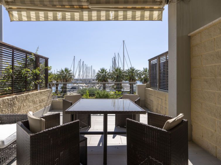 "Blue Moon", 2-room apartment 45 m2 on 1st floor. Bright, comfortable and modern furnishings: living/dining room with 1 double sofabed (140 cm, length 200 cm). Exit to the balcony. 1 room with 2 fold-away beds (90 cm, length 200 cm). Open kitchen (4 hot plates, oven, dishwasher). Shower/bidet/WC.