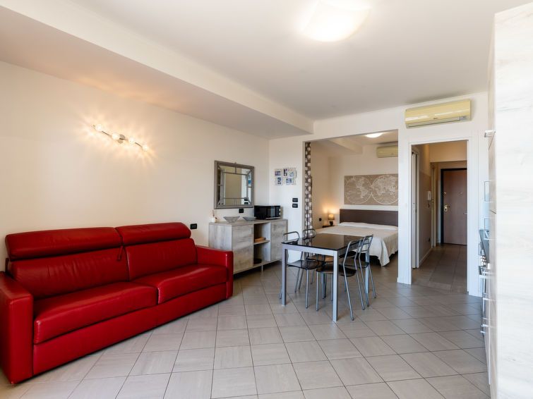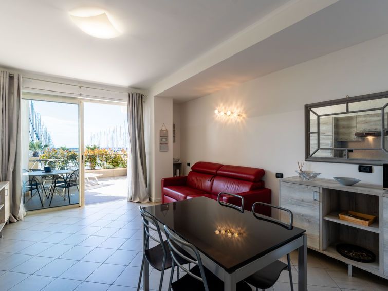 "Romina", 2-room apartment 75 m2 on 1st floor. Spacious and bright, modern and tasteful furnishings: living/sleeping room with 1 double sofabed, dining table and TV. Exit to the terrace. 1 room with 1 french beds (160.'00 cm). Open kitchen (oven, dishwasher, 4 induction hot plates, toaster, kettle, freezer, electric coffee machine).