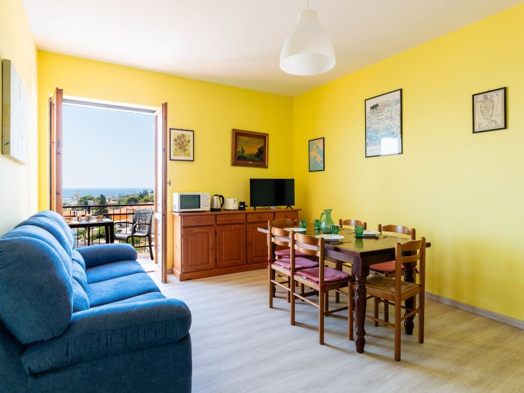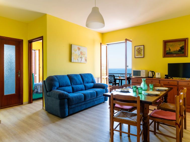 The holiday apartment was used by three of us, but could easily accommodate four people, as there are two bedrooms with a double bed each, and if necessary a couch in the living room with a small kitchenette, two hotplates and oven, fridge and freezer. The bathroom was very small, but the apartment was spacious. There were three balconies with a great view of the sea, which you could reach on foot in 10 minutes, the beach was partly pebble and sand, and there was a nice beach bar for drinks and snacks, but there were no shops/bars in town.