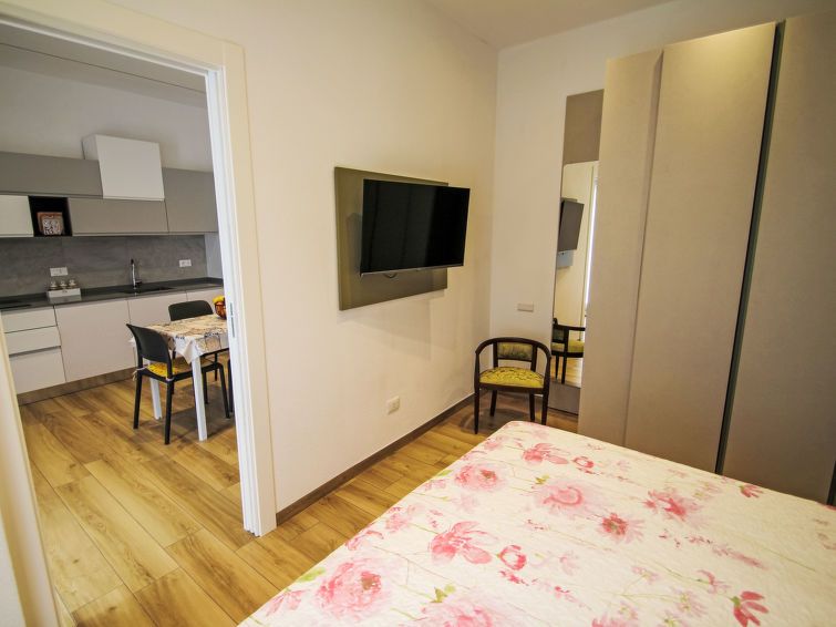 2-room apartment 42 m2, on the ground floor. Fully renovated in 2025, practical and modern furnishings: 1 double bedroom with satellite TV. Walk-through room with 1 bed, 1 pull-out bed and satellite TV. Kitchen in the entrance (oven, dishwasher, 4 induction hot plates, electric coffee machine) with dining table.