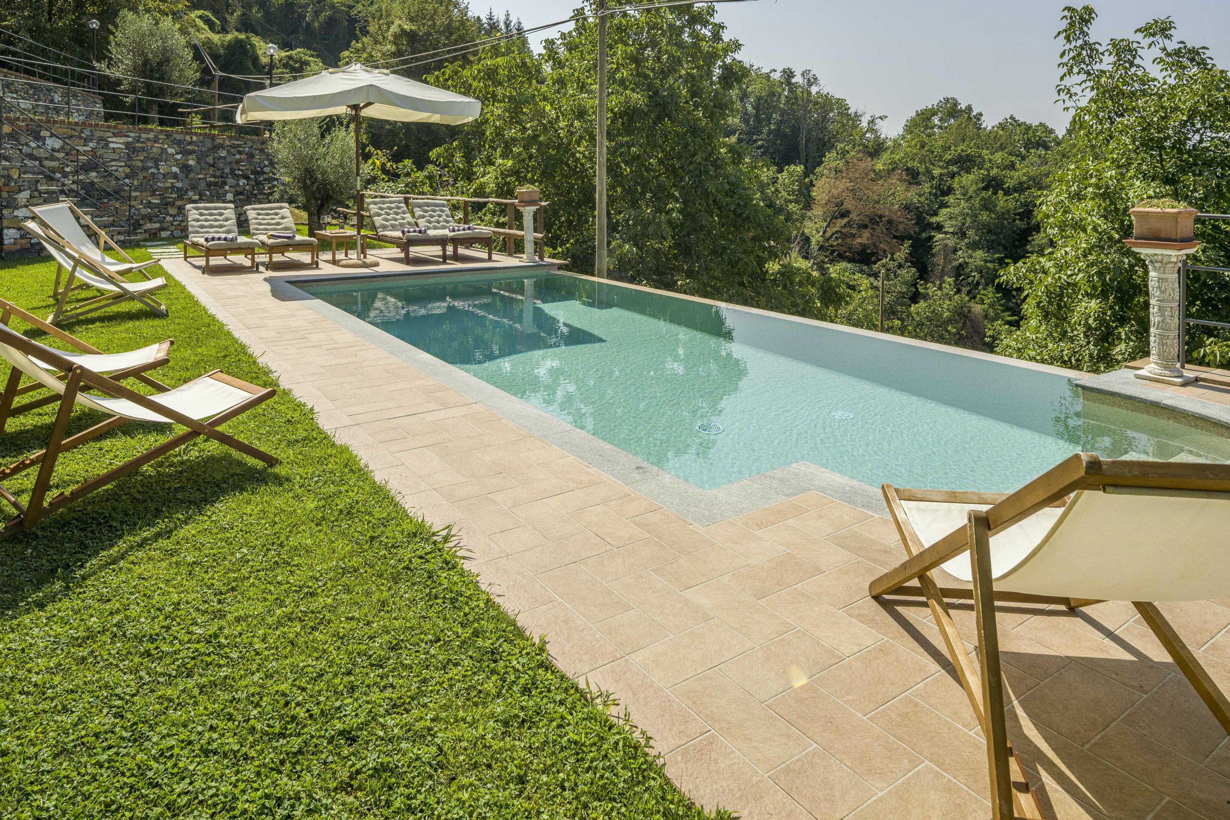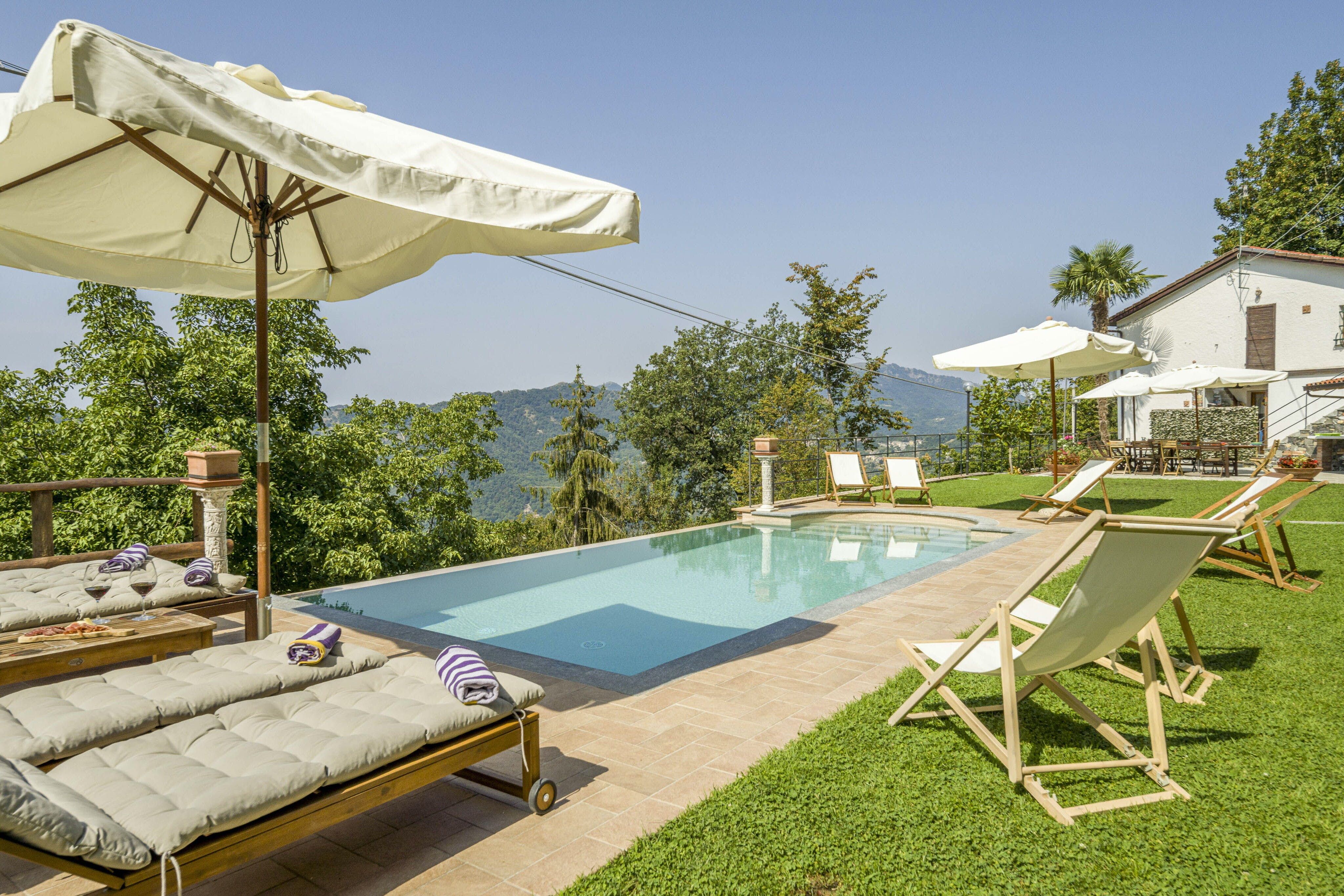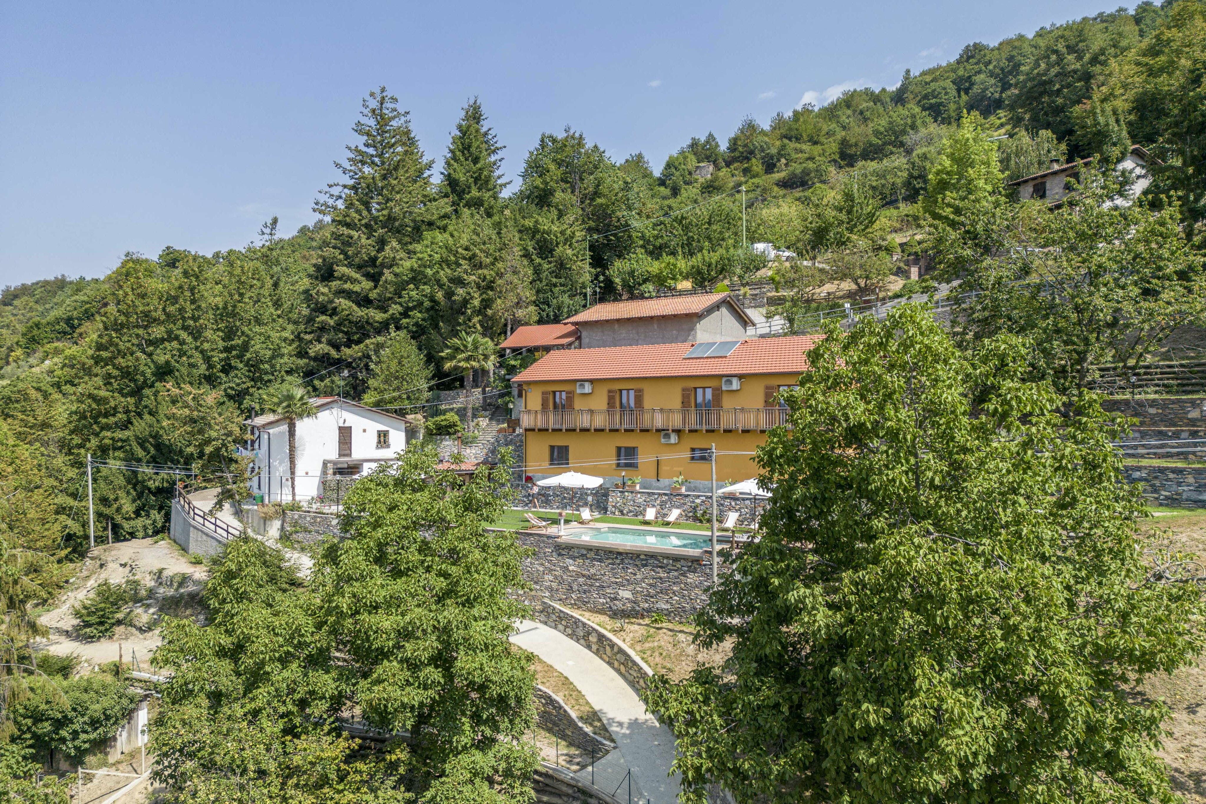 Located in a beautiful area of Liguria, this charming villa offers stunning views of the surrounding hills. The property is surrounded by greenery and features a swimming pool, sun loungers and umbrellas, space for outdoor dining, both barbecue and gas cooker, wood-burning oven, children's play area and hot outdoor shower.