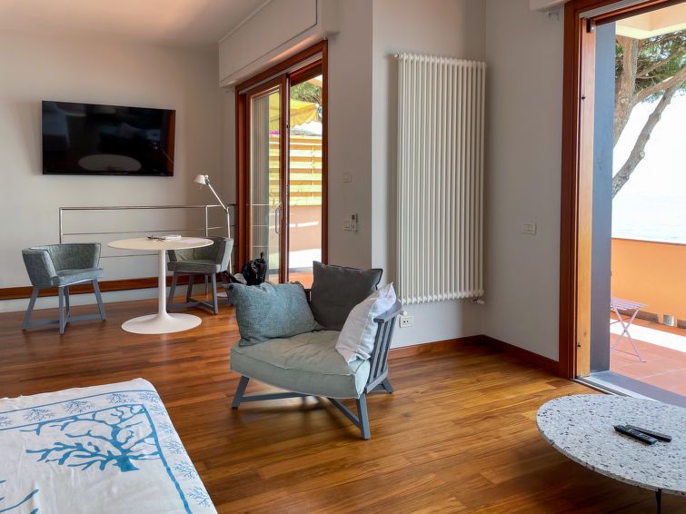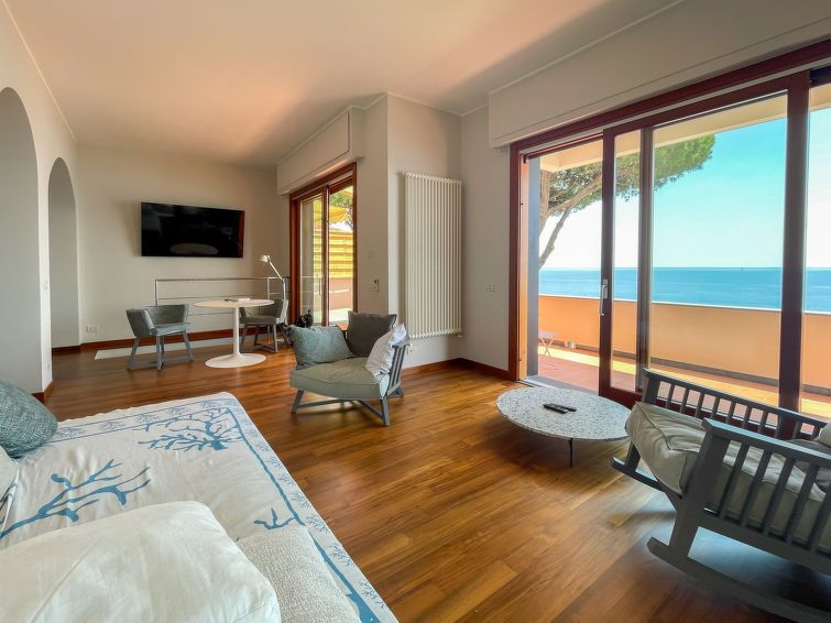 Fantastically beautiful, spacious and recently renovated holiday apartment: overwhelming view of the sea and the coastline through the panoramic windows and from the 3 terraces, of which at least one is always in the sun and another is shaded. The access to the sea and the nearby beach (with Italian bar) through the beautifully landscaped terraced property is brilliant. Cycle path to Varraze and to several small beaches. Constant sound of the sea - simply brilliant!