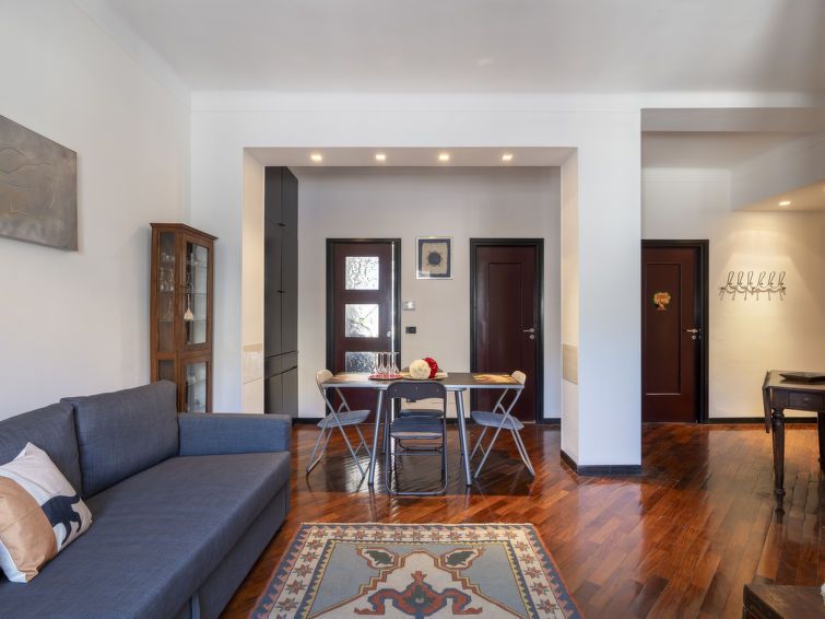 "Delia", 3-room apartment 100 m2 on 5th floor. Very comfortable and tasteful furnishings: living/dining room with 1 sofabed (160 cm, length 200 cm). Exit to the balcony. 1 double bedroom with Dressing room. 1 room with 1 bed (90 cm, length 200 cm). Kitchen-/living room (oven, dishwasher, 4 gas rings, toaster, kettle).