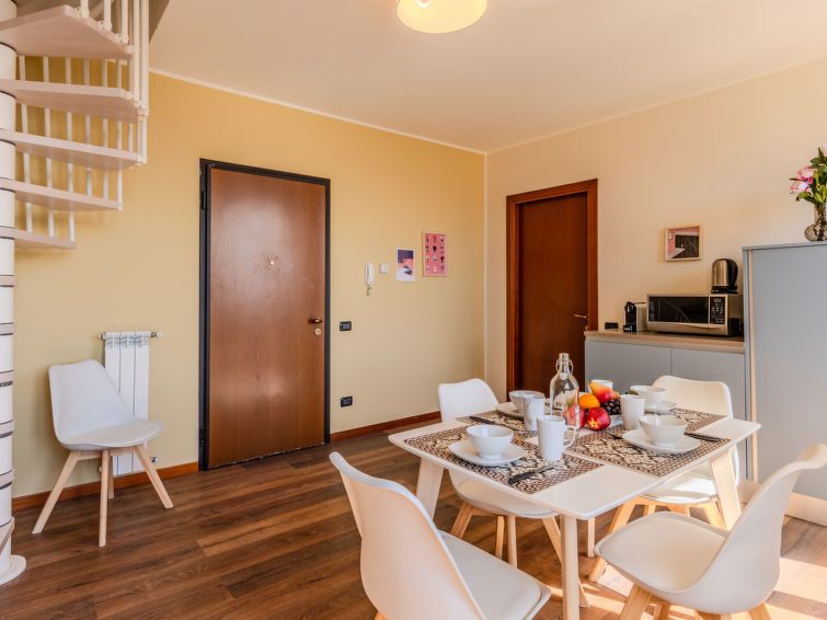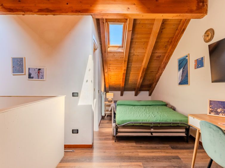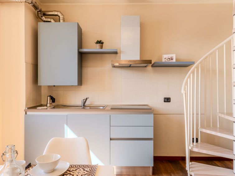 3-room apartment on 2 levels on 3rd floor. Comfortable and modern furnishings: open living/dining room with dining table. 1 double bedroom. Open kitchen (4 induction hot plates, kettle, microwave, electric coffee machine, Capsules for coffee machine (Bialetti)). Shower/bidet/WC. Upper floor: (spiral staircase) open living/sleeping room with 1 bed, 1 double sofabed and TV (flat screen).