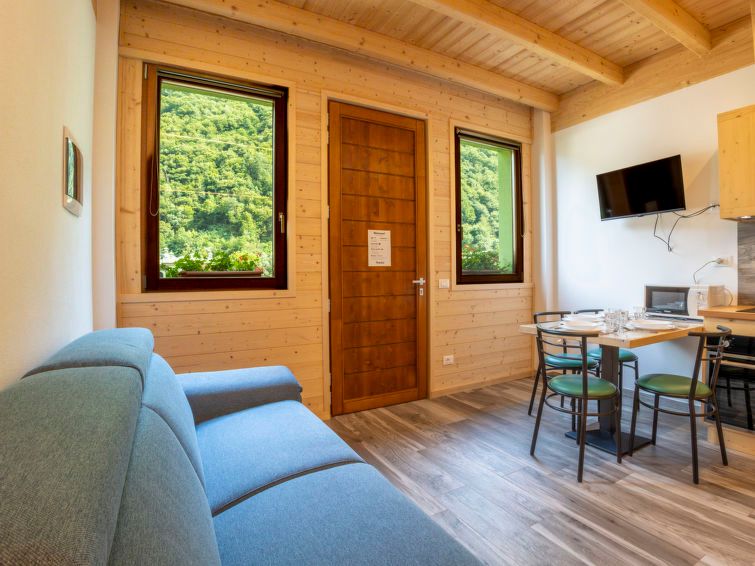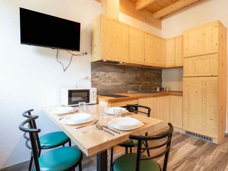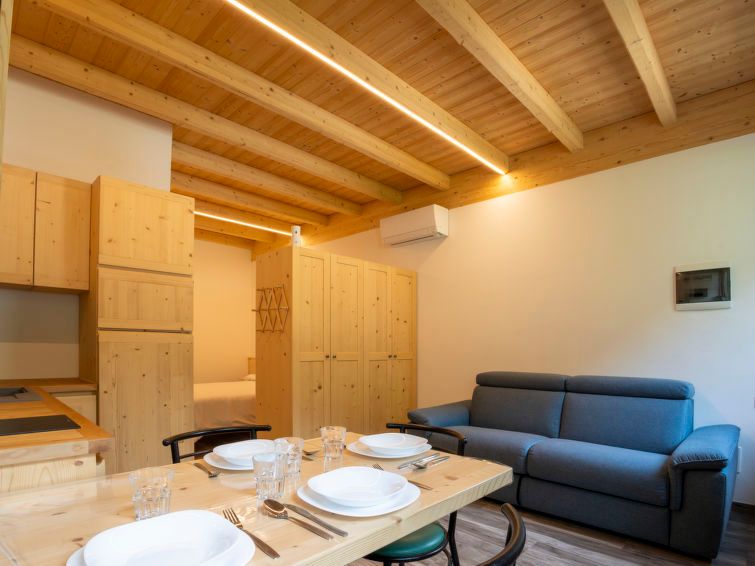 1-room studio 28 m2 on 1st floor, south facing position. Fully renovated in 2024, comfortable and modern furnishings: living/sleeping room with 1 double sofabed, 1 double bed and TV. Exit to the terrace. Kitchenette in the entrance (oven, dishwasher, 2 induction hot plates, toaster, kettle, electric coffee machine, Capsules for coffee machine (Nespresso) free).