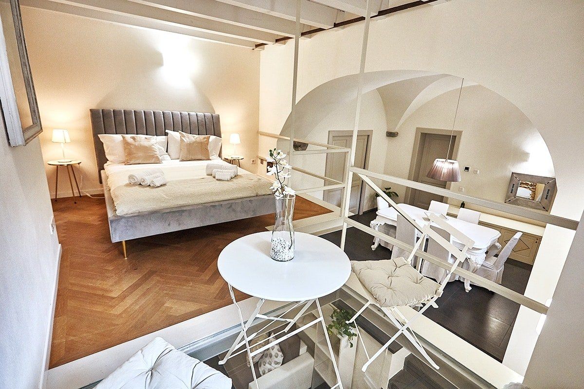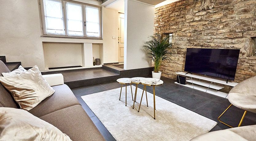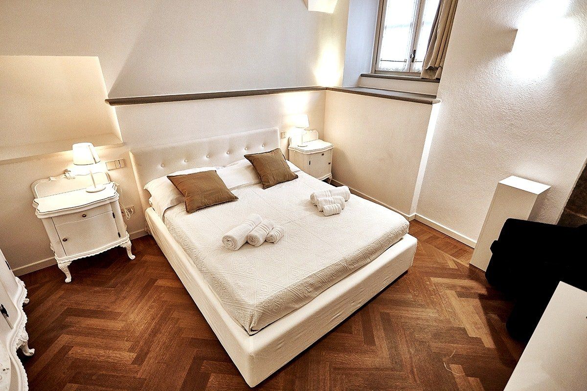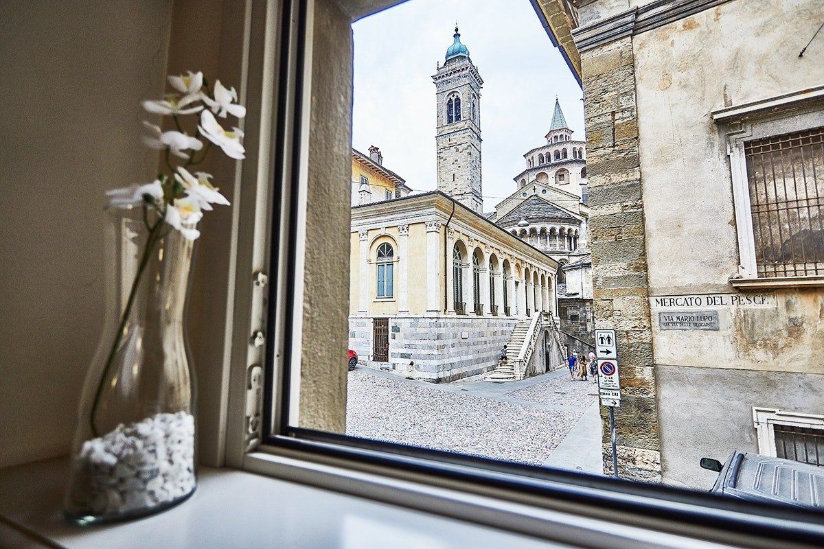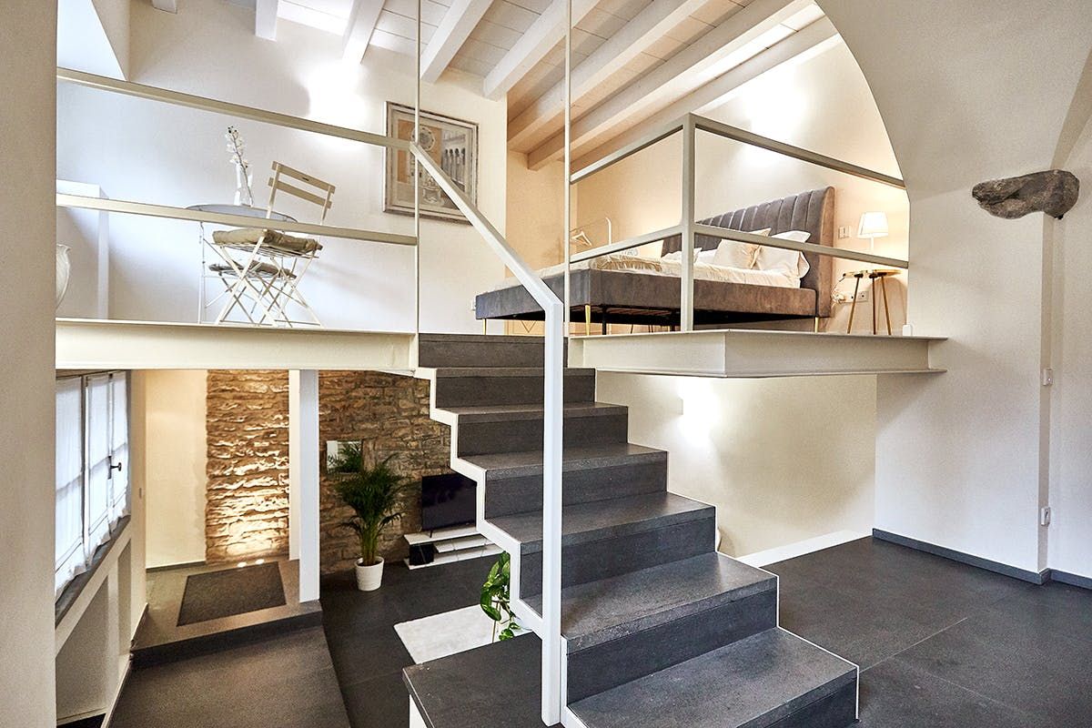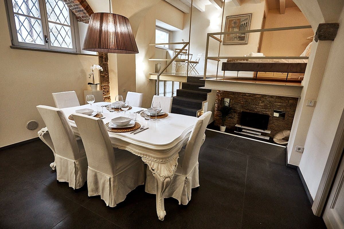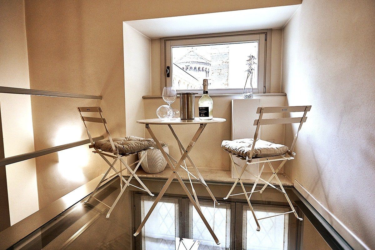 This duplex apartment embraces the history of Bergamo. Dating back to the 16th century, the thick stone walls keep this place naturally cool in summer. There are a few steps and stairs throughout, owing to the age of the building, and one of the bedrooms is on an open mezzanine level overlooking the dining area. There’s no doubt it’s quirky – just look at the bistro table on the glass floor above the living room. From here, you can peer out at the ancient church-filled streets of Bergamo, easily explored on foot from this historic bolthole.