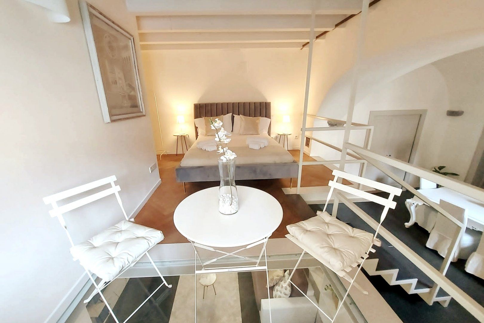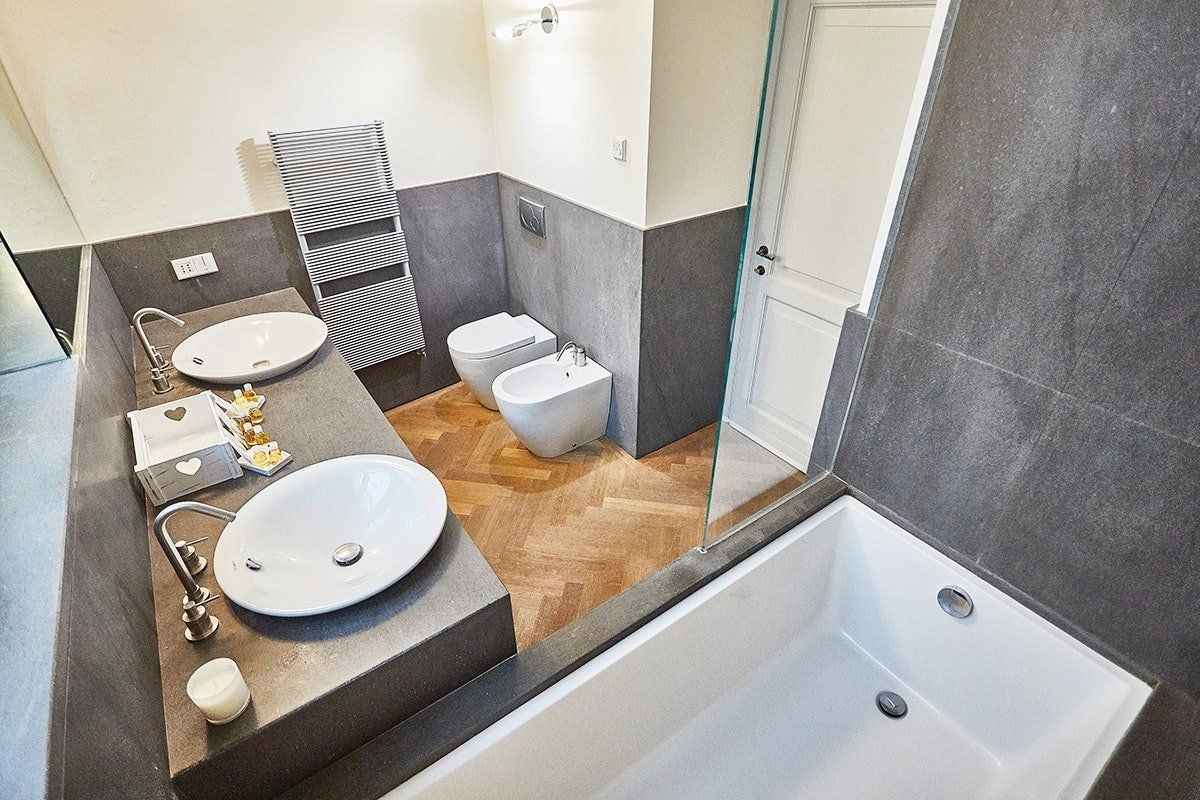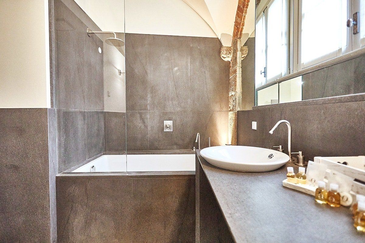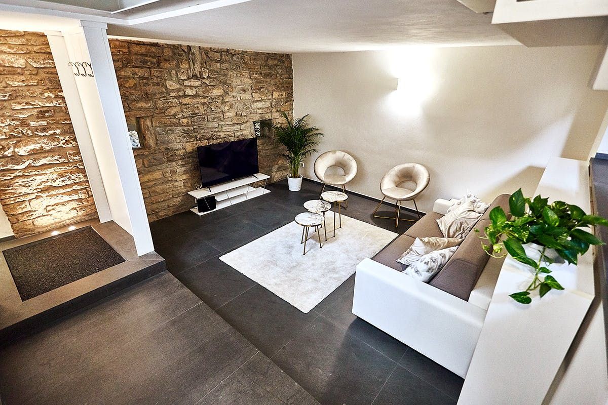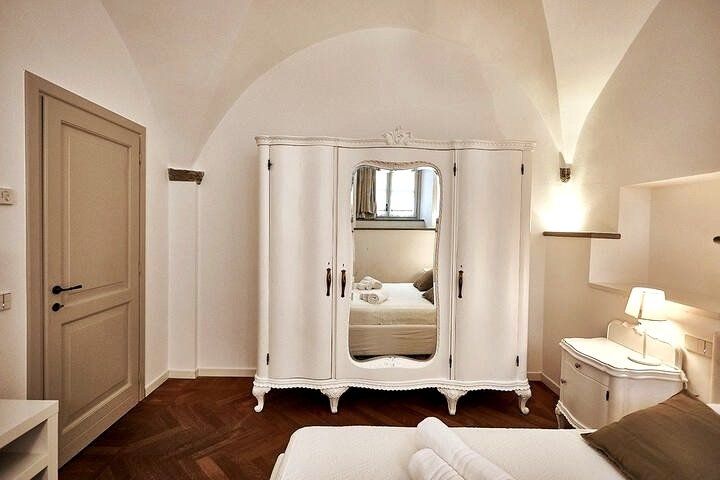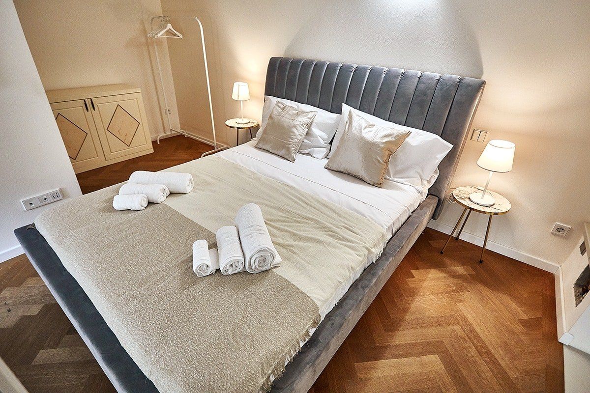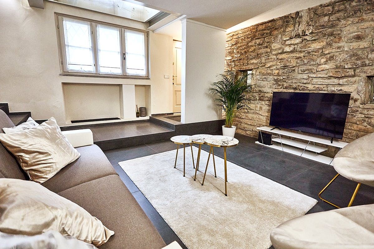 This duplex apartment embraces the history of Bergamo. Dating back to the 16th century, the thick stone walls keep this place naturally cool in summer. There are a few steps and stairs throughout, owing to the age of the building, and one of the bedrooms is on an open mezzanine level overlooking the dining area. There’s no doubt it’s quirky – just look at the bistro table on the glass floor above the living room. From here, you can peer out at the ancient church-filled streets of Bergamo, easily explored on foot from this historic bolthole.