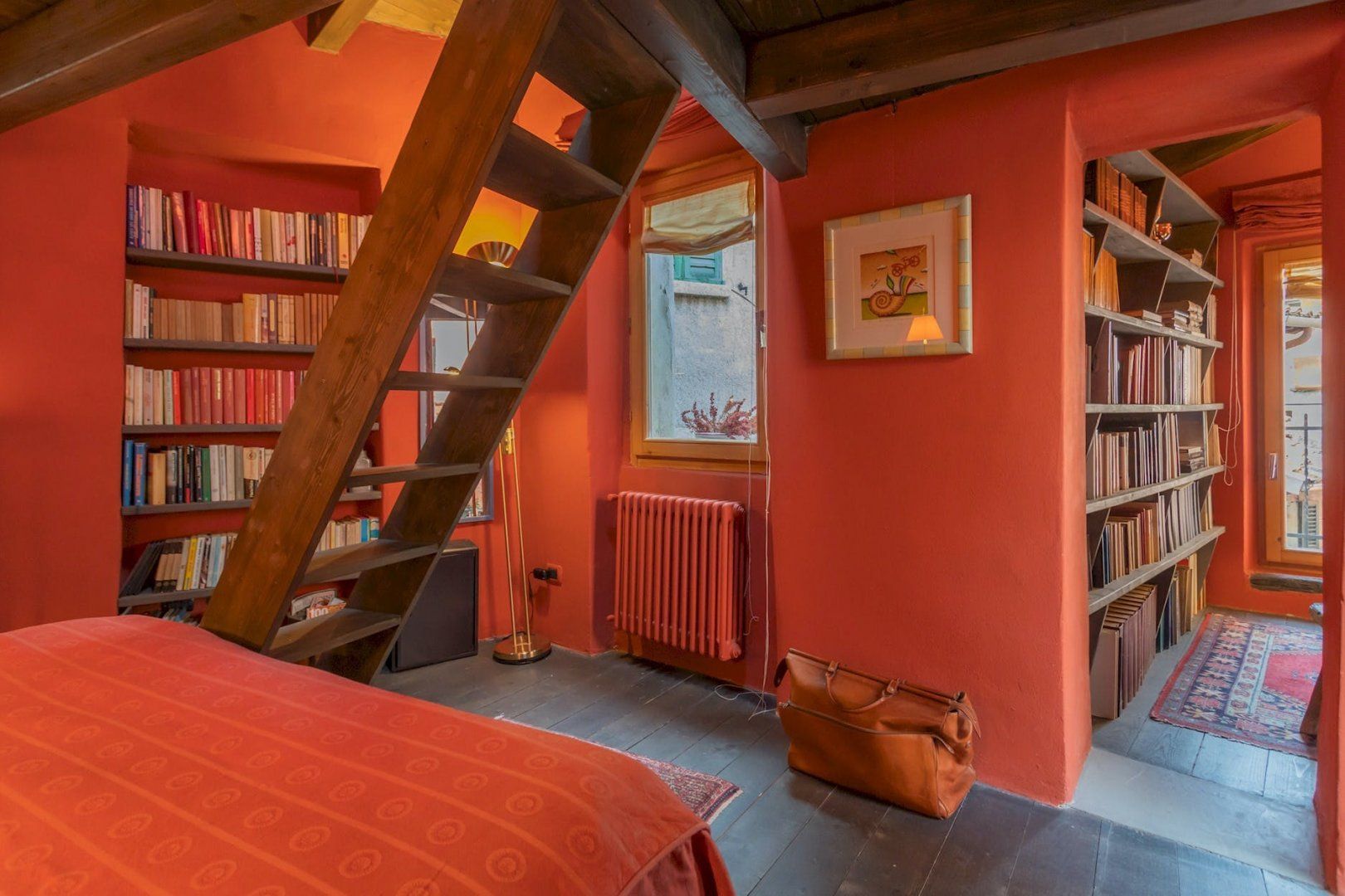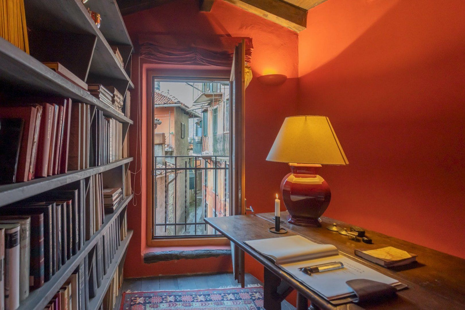 Nestled in the charming town of Blevio, this apartment is ideal for a solo traveller or a couple. You'll want to pack light here as space is tight and the traditional style won't be for everyone, but if you're a creative looking for an authentically Italian stay, look no further. The bed is surrounded by bookshelves on the ground level and the mezzanine, and there's a window in the study overlooking the narrow streets and nearby buildings. Within walking distance, you'll find Lake Como, and while you won't find parking here, you can catch a bus into Como city and a train into the beautiful Milan.