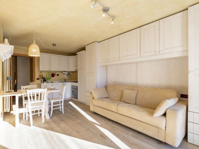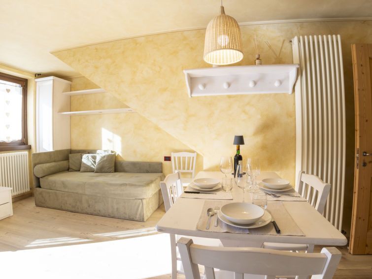 1-room studio 38 m2 on 1st floor. Practical and comfortable furnishings: living/dining room with 1 double sofabed, dining table and TV. Exit to the balcony. Kitchenette (4 hot plates, oven, dishwasher, toaster, kettle, microwave, electric coffee machine, Capsules for coffee machine (Nescafè Dolcegusto) free).