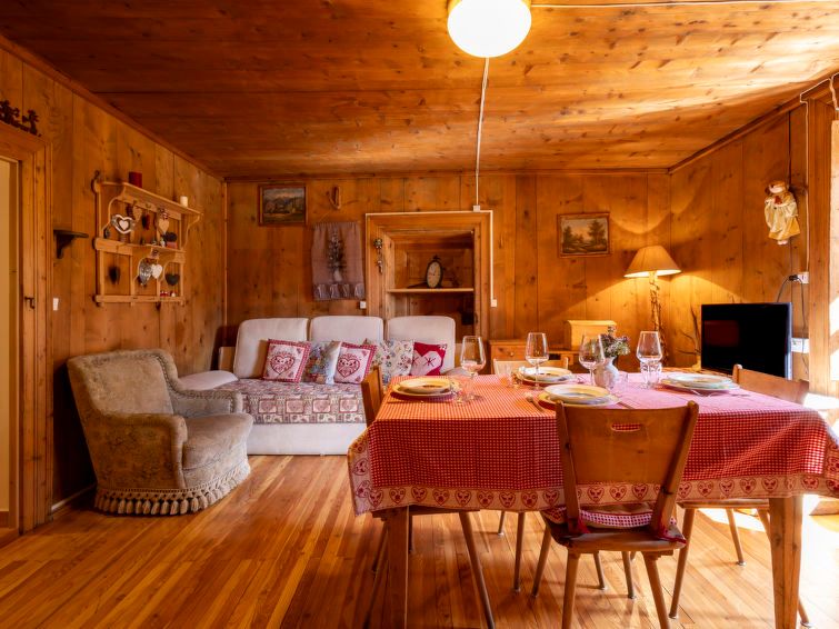 3-room apartment 98 m2 on 1st floor. Comfortable and wooden furniture furnishings: living/dining room with dining table and TV. 1 room with 2 beds. 1 double bedroom. Kitchen in the entrance (oven, dishwasher, 4 induction hot plates, toaster, kettle, freezer, electric coffee machine, Capsules for coffee machine (Nespresso) free) with open-hearth fireplace and Scandinavian wood stove (only for decoration).