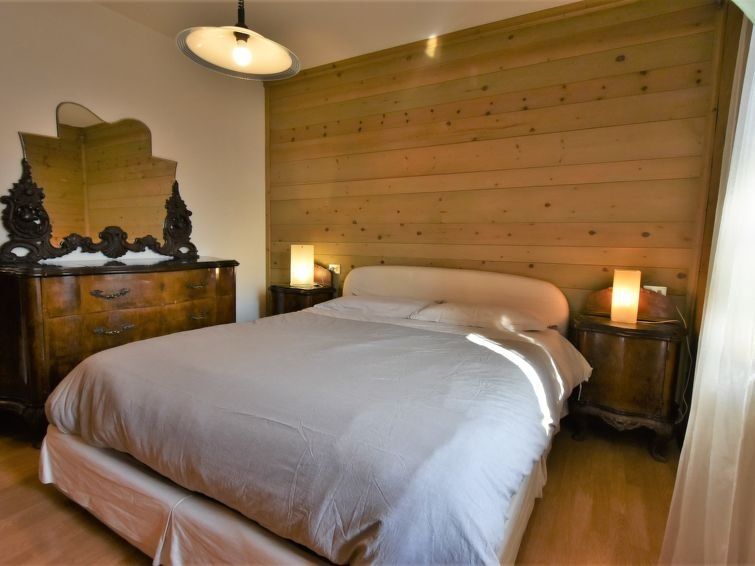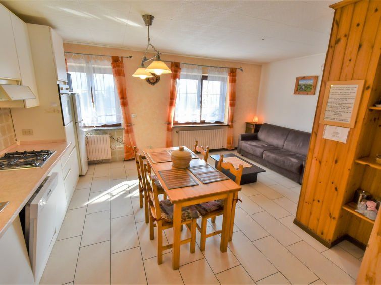 2-room apartment 40 m2, on the ground floor. Practical and comfortable furnishings: large living/dining room with 1 double sofabed, dining table, TV and tiled stove. 1 room with 1 french bed. Kitchenette (4 hot plates, oven, dishwasher, freezer). Shower/bidet/WC. Beautiful panoramic view of the mountains and the valley.