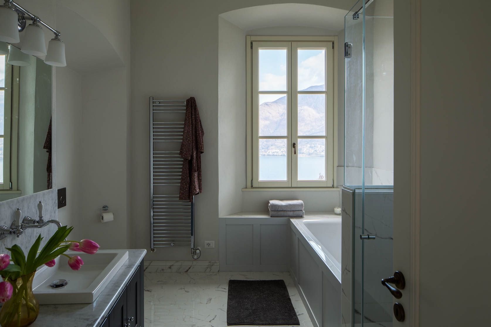 This villa's position, a little way back from the Lake Como shore, offers a stunning vantage point to admire the surrounding Alps – and the pool terrace makes the most of the vistas. While there are traces of the past in the ceiling frescos and antique tiling, this home has embraced a modern aesthetic that places the lake centre stage. The sleek kitchen features an island, and the dining room offers more than enough space for dinner parties – if anything, it feels a little bare. Of course, if you'd rather dine out, there's a selection of lakefront restaurants just a fifteen-minute walk away in Pianello del Lario.