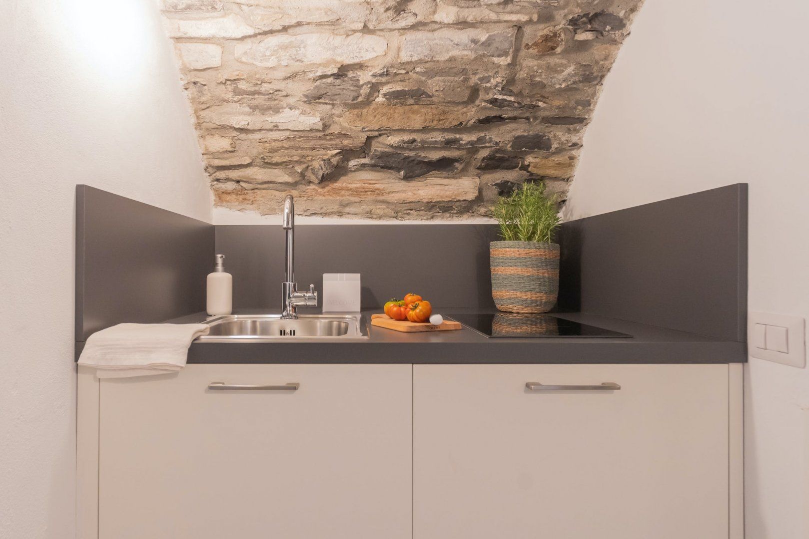 We love the vistas over Lake Como from this apartment’s Juliet balconies in the living room and bedroom. On a practical note, the living area can get a bit cramped if four guests stay, as two will be sleeping on a sofa bed here. Also, the kitchenette doesn’t have an oven or much food preparation space, so it’s best suited to making snacks and light meals. Luckily, there are a couple of eateries nearby. This home is situated in Carate Urio on the western shore of Lake Como, with lots of residential villas. If you fancy going on a boat trip to explore Lake Como’s other towns, take a ten-minute walk to Urio’s dock.