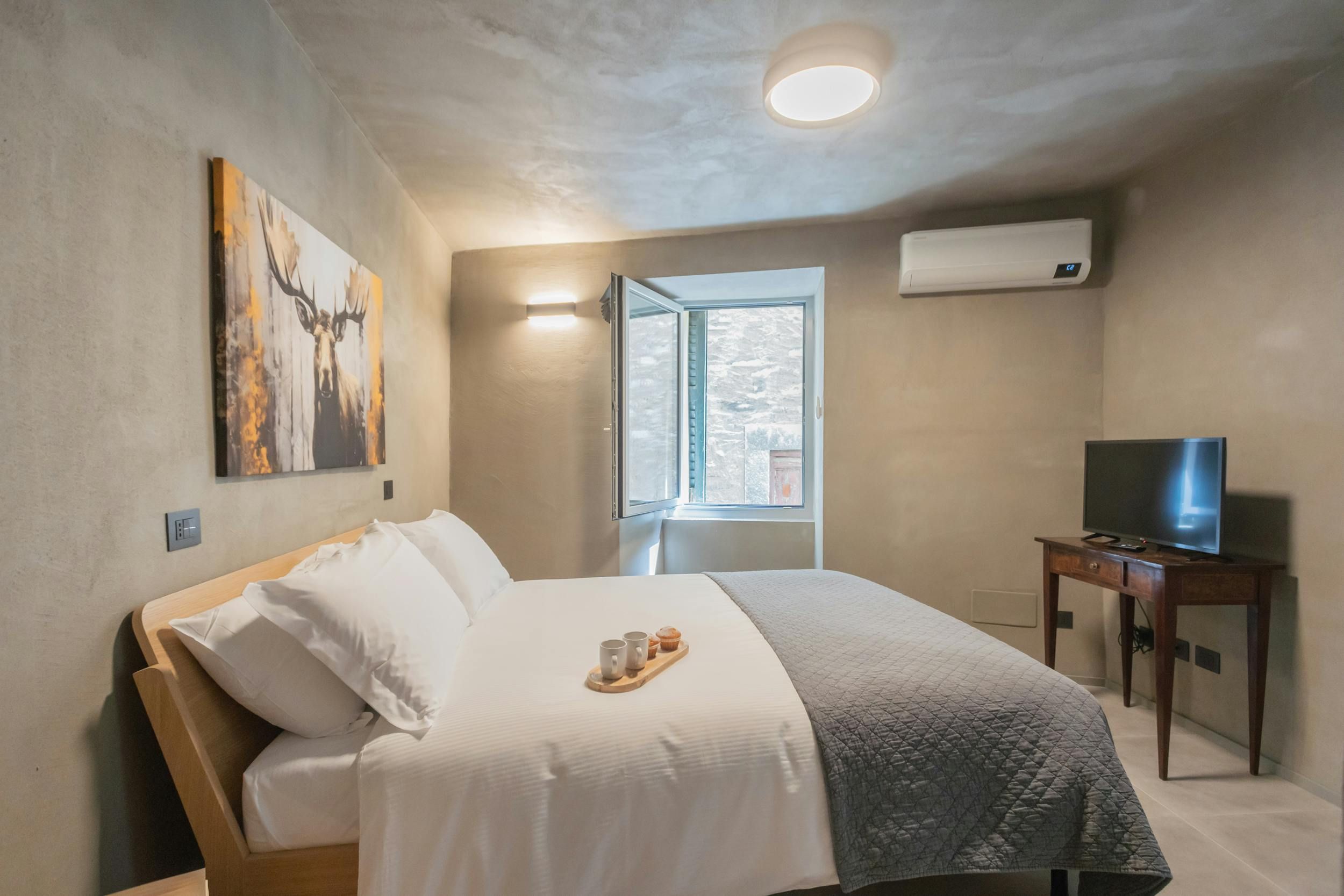 Perfect for two families, this home is comprised of two apartments. Each has a living space, kitchen, and bedroom – at full occupancy, four guests will sleep on sofa beds. You’ll be just behind Castello di Urio, a historic residence dating back to the Middle Ages, and close to restaurants. It’s just 15 kilometres from Como, and a few steps from the pier where you can embark on ferry trips across Lake Como.