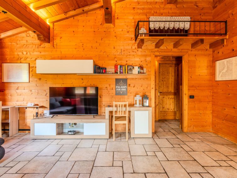 "Ritiro del Paladino", 3-room chalet 90 m2, on the upper ground floor. Spacious and bright, very comfortable and cosy furnishings: living room with 1 sofabed and open-hearth fireplace (only for decoration), TV. 1 double bedroom. 1 room with 2 beds. Kitchen-/living room (oven, dishwasher, Gas stove, 4 gas rings, toaster, kettle, microwave, freezer, electric coffee machine) with dining table.
