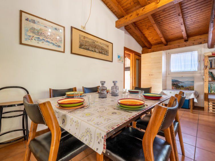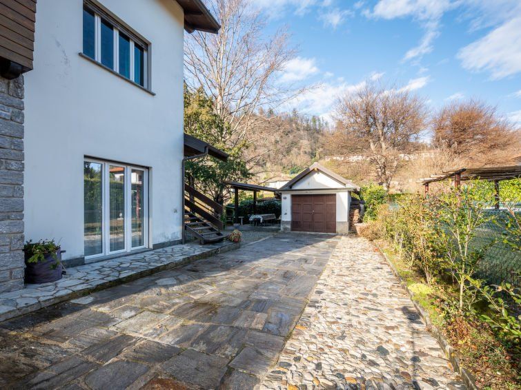 The location is extraordinary, you are in less than 10 minutes at the lake (there is a very long pebble beach) and you have a view of the lake with the Chiesa di Santa Veronica in the foreground (from the terrace), the mountains, the beautiful garden with old trees and many birds and the gardens of the neighboring properties. Walks through the extensive villages, to the Rocca di Caldè and to the wooded hills in the hinterland are possible directly from the house. Only the many guard and bloodhounds cause problems.