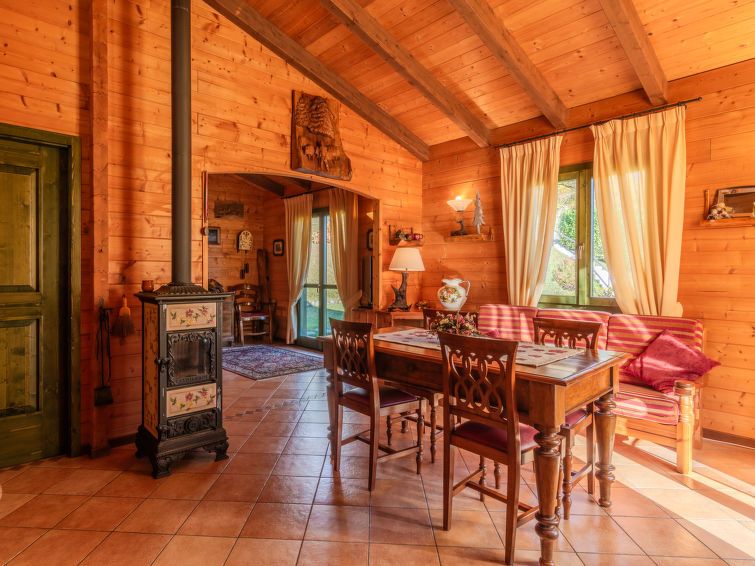 3-room chalet 65 m2 on 2 levels. Cosy and wooden furniture furnishings: 1 double bedroom with shower/bidet/WC. Exit to the garden, to the swimming pool. Upper floor: (exterior staircase) living/sleeping room with 1 double sofabed and Scandinavian wood stove (only for decoration), dining table and TV (flat screen).