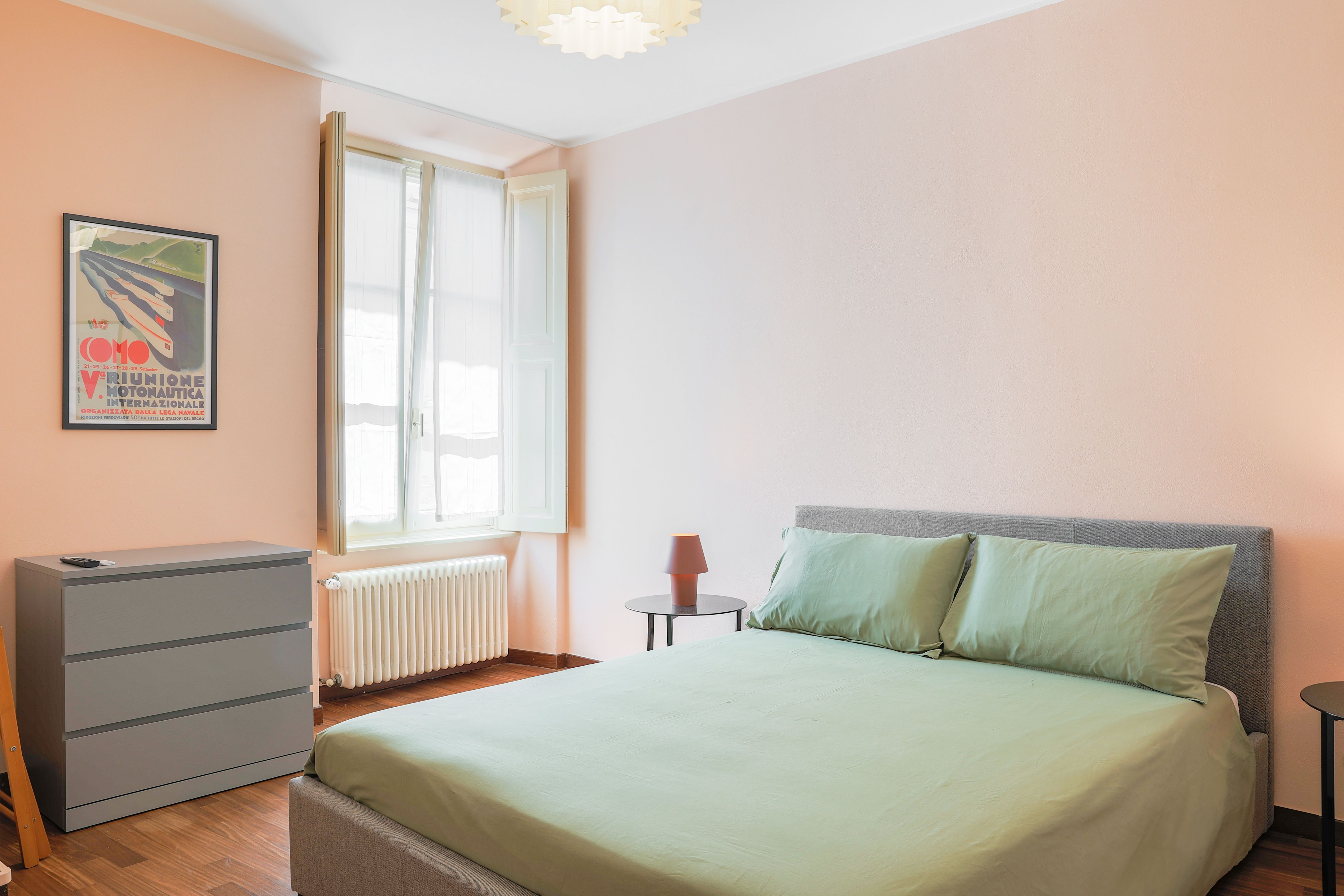 Perched along Cernobbio’s waterfront promenade in a handsome 20th-century former palazzo, this apartment's setting impresses. Step outside and you’re moments from lakefront cafes, restaurants and the piazza – perfect for lazy lunches and a spot of people-watching. Meanwhile, the nearby little port makes boat trips across Lake Como easy. That said, it’s just as tempting to soak up the lakeside bustle from home. Dual-aspect windows in the living area frame the water beautifully, setting the scene for relaxed evenings in with a view.