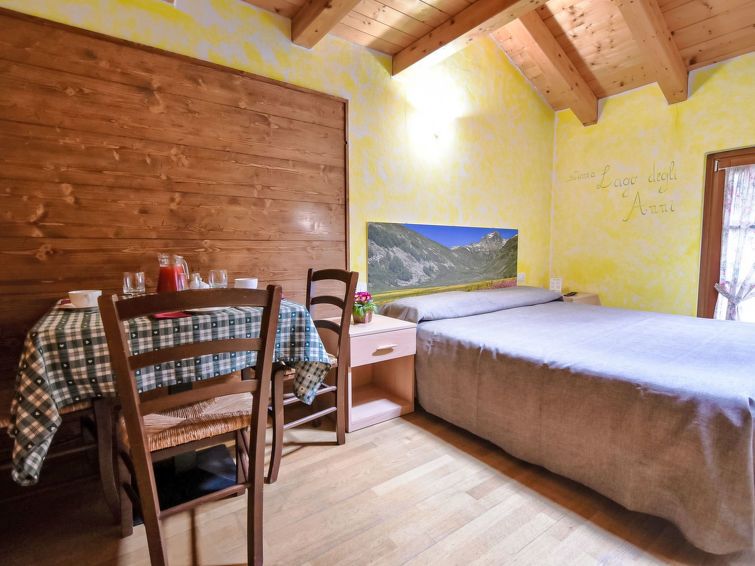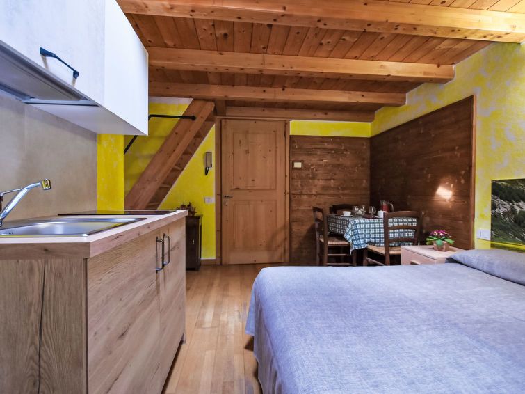 "Lago degli Anni", 1-room Loft 30 m2 on 2 levels on 2nd floor. With sloping ceilings, practical and comfortable furnishings: living/dining room with 1 double bed, dining table and TV. Small kitchenette (2 induction hot plates, toaster, kettle, microwave). Shower/WC. Heating, air-conditioning.
