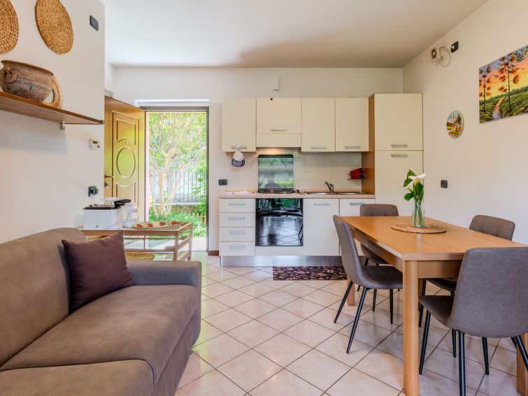 "Flower Garden", 2-room apartment 50 m2, on the ground floor. Comfortable furnishings: living/sleeping room with 1 double sofabed, TV and air conditioning. Exit to the garden. 1 double bedroom. Exit to the garden. Open kitchen (oven, 4 gas rings, toaster, microwave). Shower/bidet/WC.