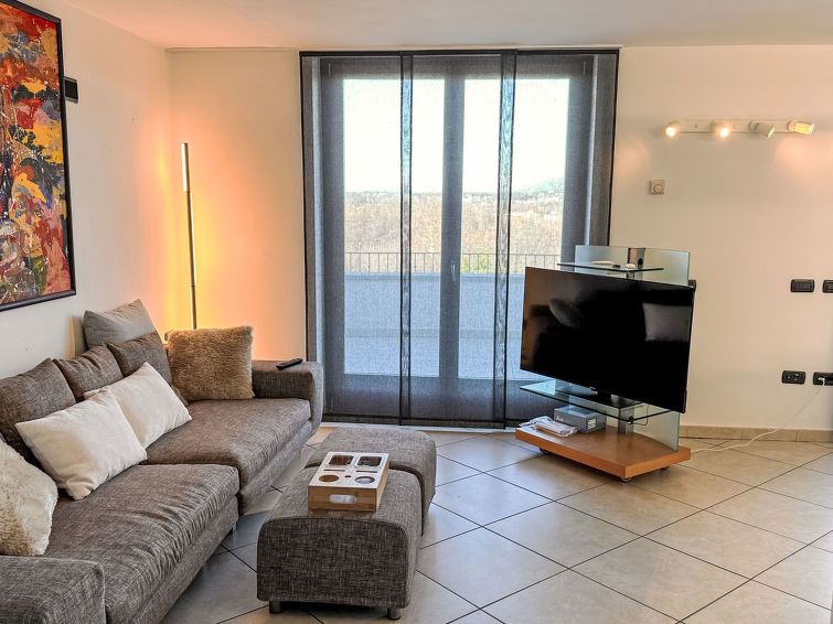 The villa is located on a quiet private road, secured by a gate. Large pool, exclusive use; loud music at the pool is no problem; well-maintained garden. Modern, bright apartment with a large terrace: On clear days, panoramic views of the Swiss Alps. Two air conditioning units (kitchen & master bedroom), small bedroom only with a fan. Room doors with frosted glass. Third bedroom two floors below: huge TV & air conditioning. A. was always available and helpful. THANK YOU