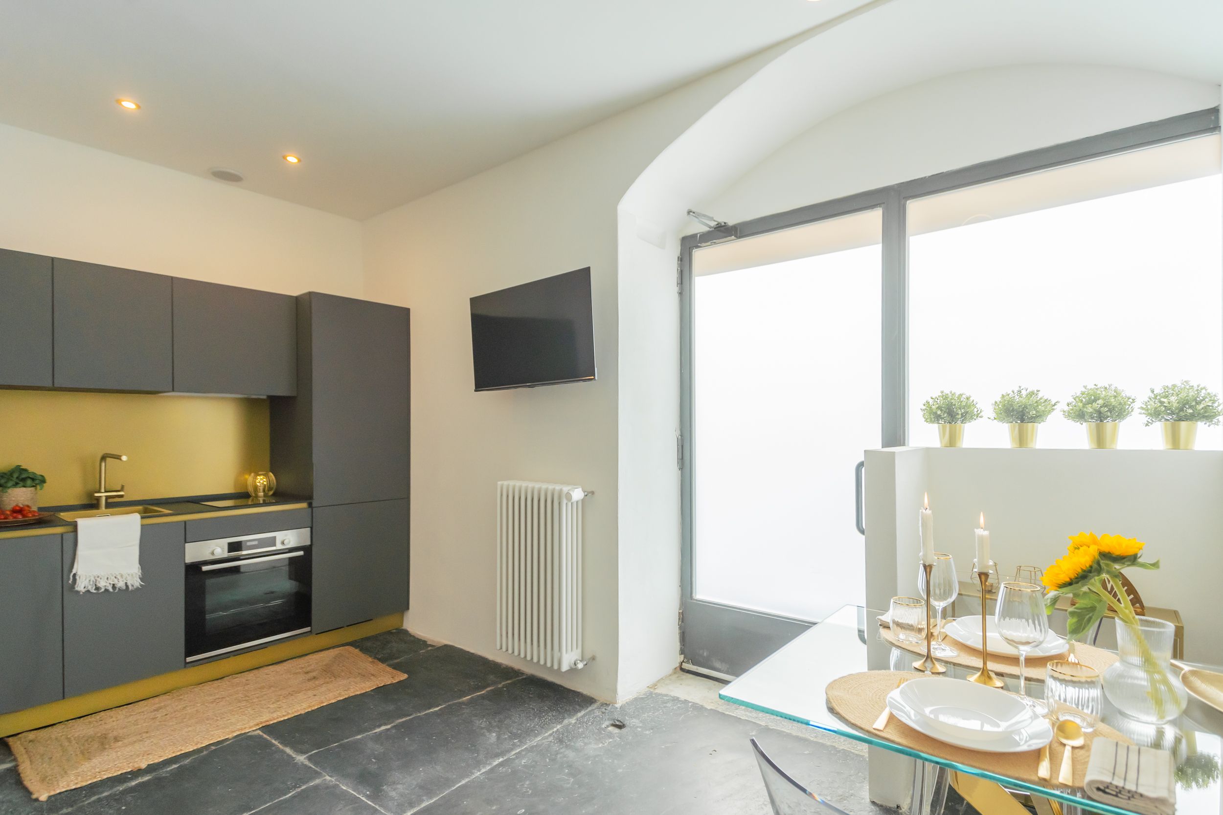 This stylish pair of adjoining apartments puts you in the heart of Como Town, just steps from the cathedral. One apartment features a double bedroom with a separate kitchen and living space, while the other is a cosy studio with a kitchenette – perfect if you fancy a little privacy, and when you want to come together, there’s a charming shared terrace for alfresco dining. The azure waters of Lake Como are just a ten-minute stroll away, where you can hop on a ferry to explore the picturesque towns dotting its shores.