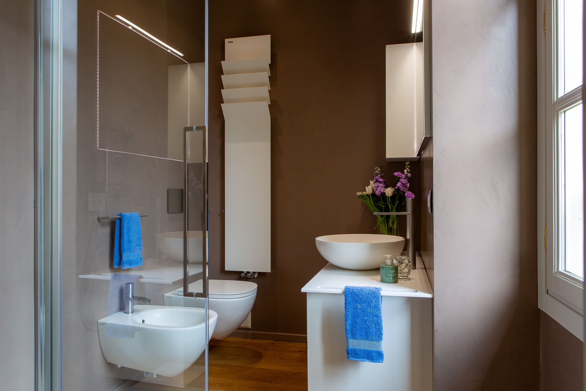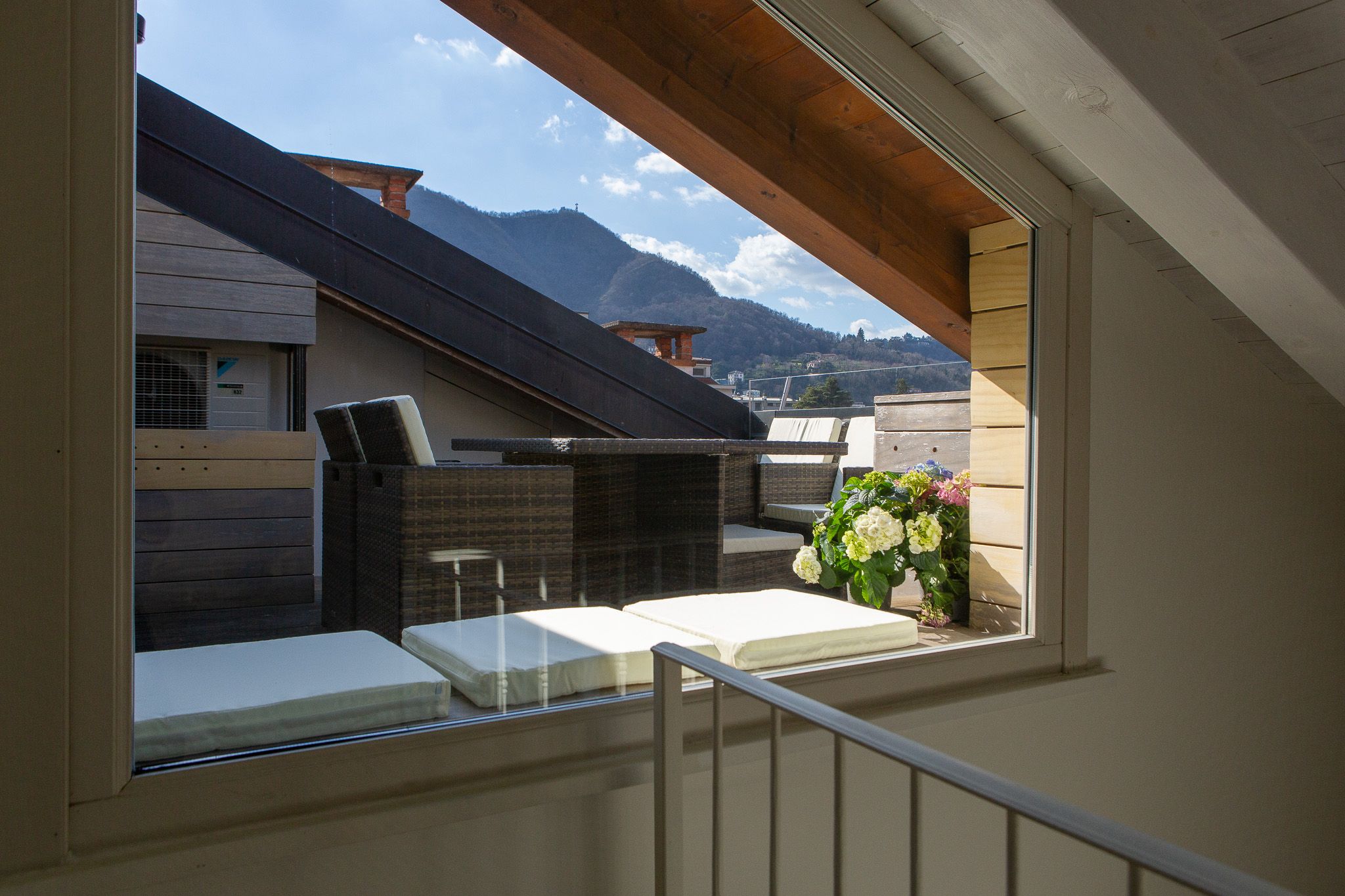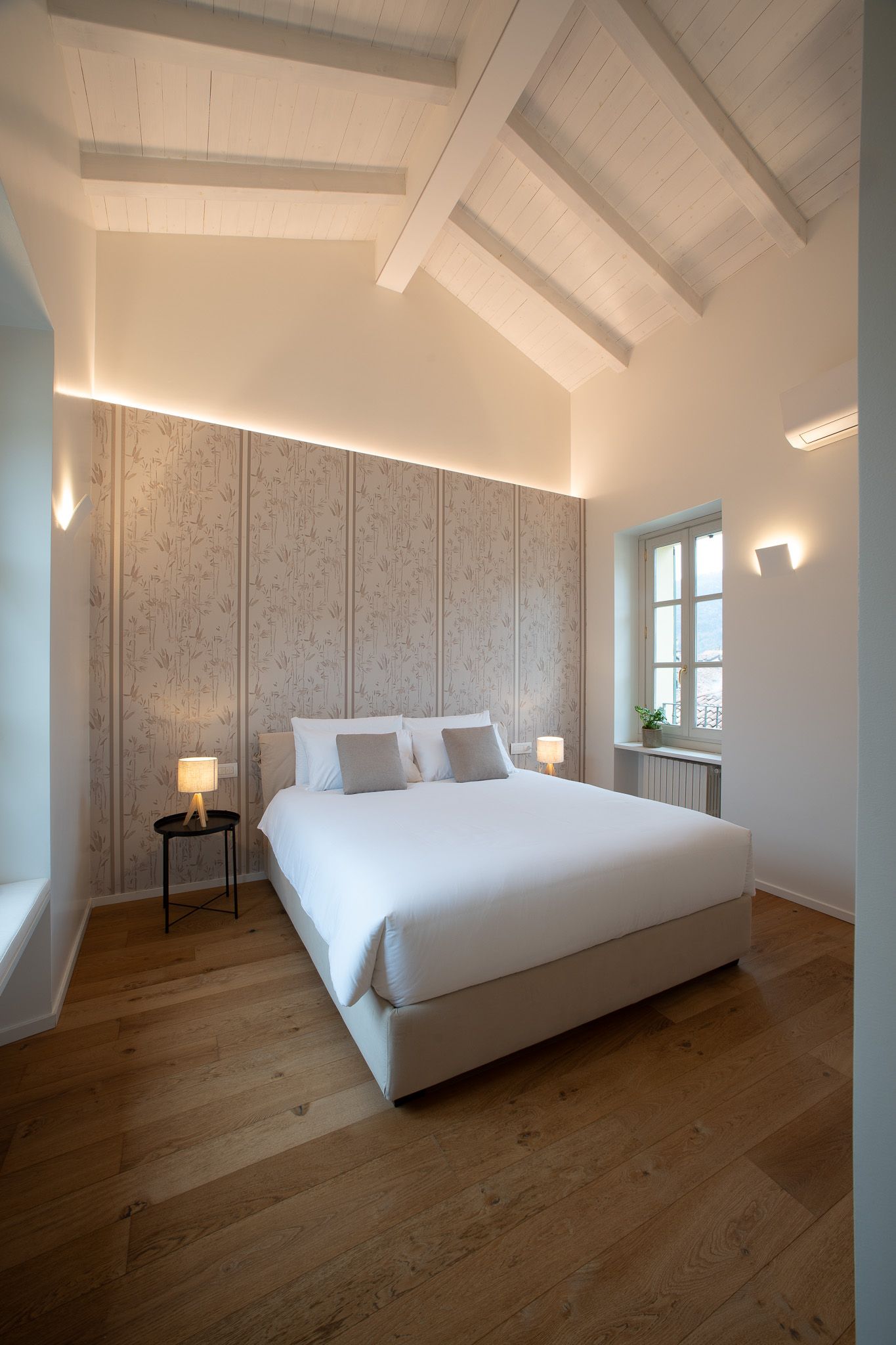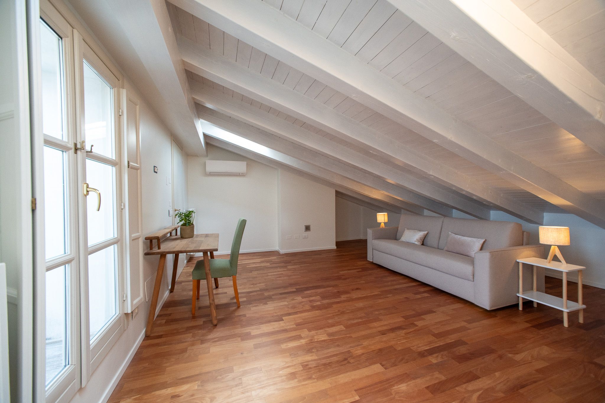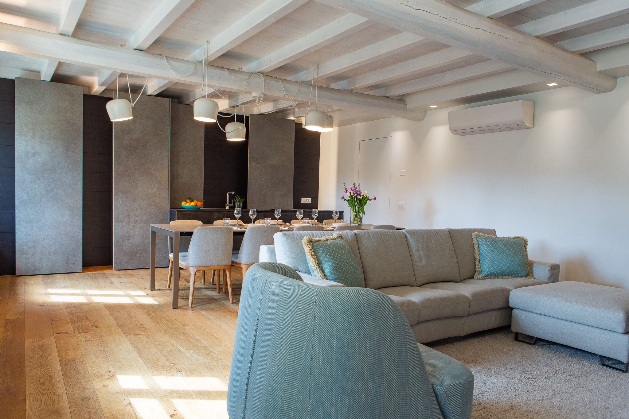 This loft apartment offers a unique blend of city living and peaceful retreat. It’s in the centre of Como, but still feels quiet and tranquil – you can relax here when you're not out exploring Lake Como and its surroundings. The star of the show is the roof terrace, a dreamy spot for dining alfresco while drinking in the view. The apartment is bright and welcoming, with large windows that frame Como views. It’s minimalist in style but has everything you’ll need for a comfortable stay, though two guests will sleep on a sofa bed. We love the elegant dining space… who’s in the mood for pasta?