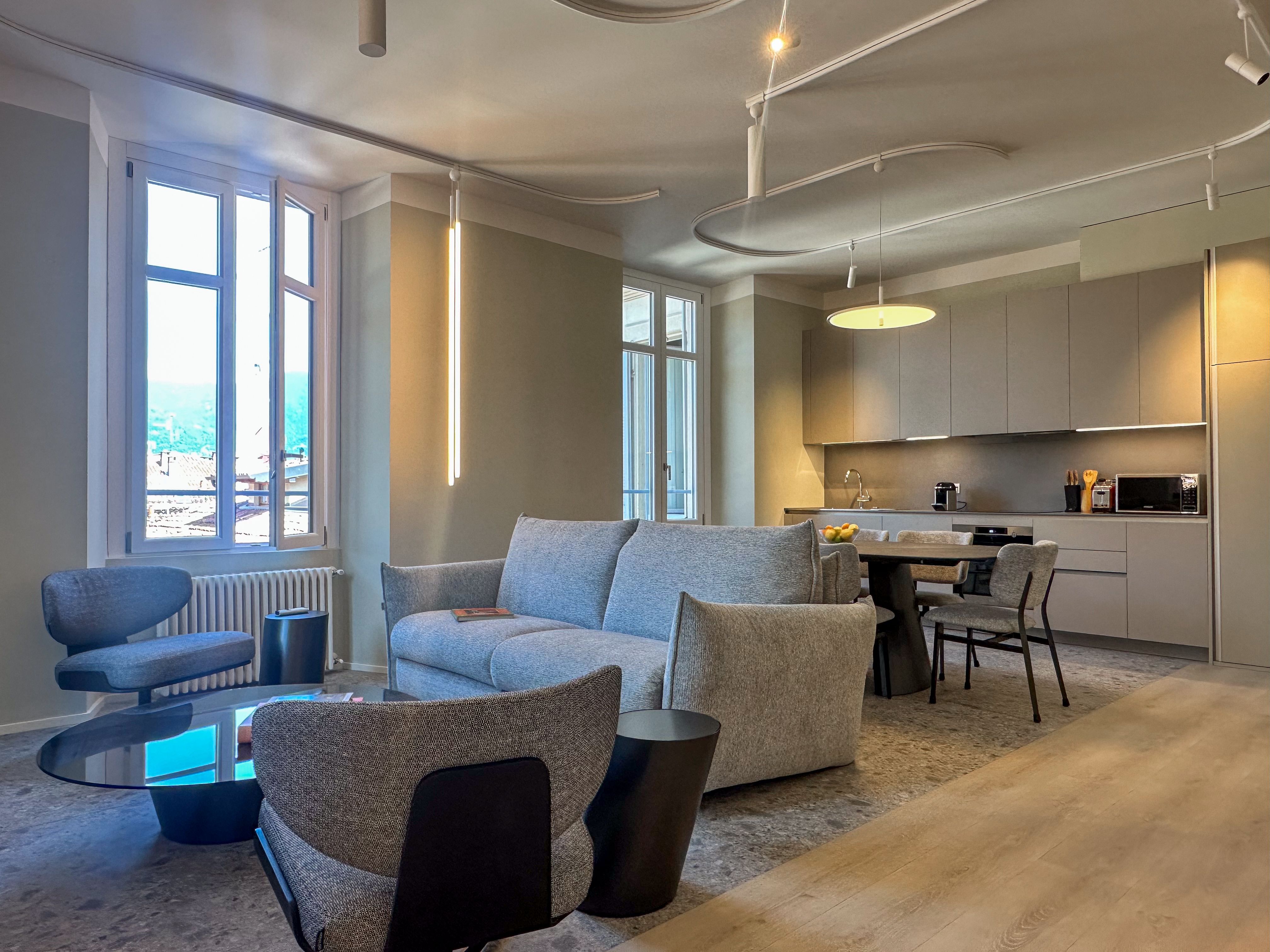 Situated on the top floor of a historic 19th-century building, this apartment has great views over the city of Como. The open-plan living room is a decent size and has a well-equipped kitchen – this room also sleeps guests five and six on the sofa bed. Located in the heart of Como, next to Piazza San Fedele, once used as a grain market, you’ll now find cafes and restaurants on your doorstep. Lake Como and the Tempio Voltiano are also a short stroll away.