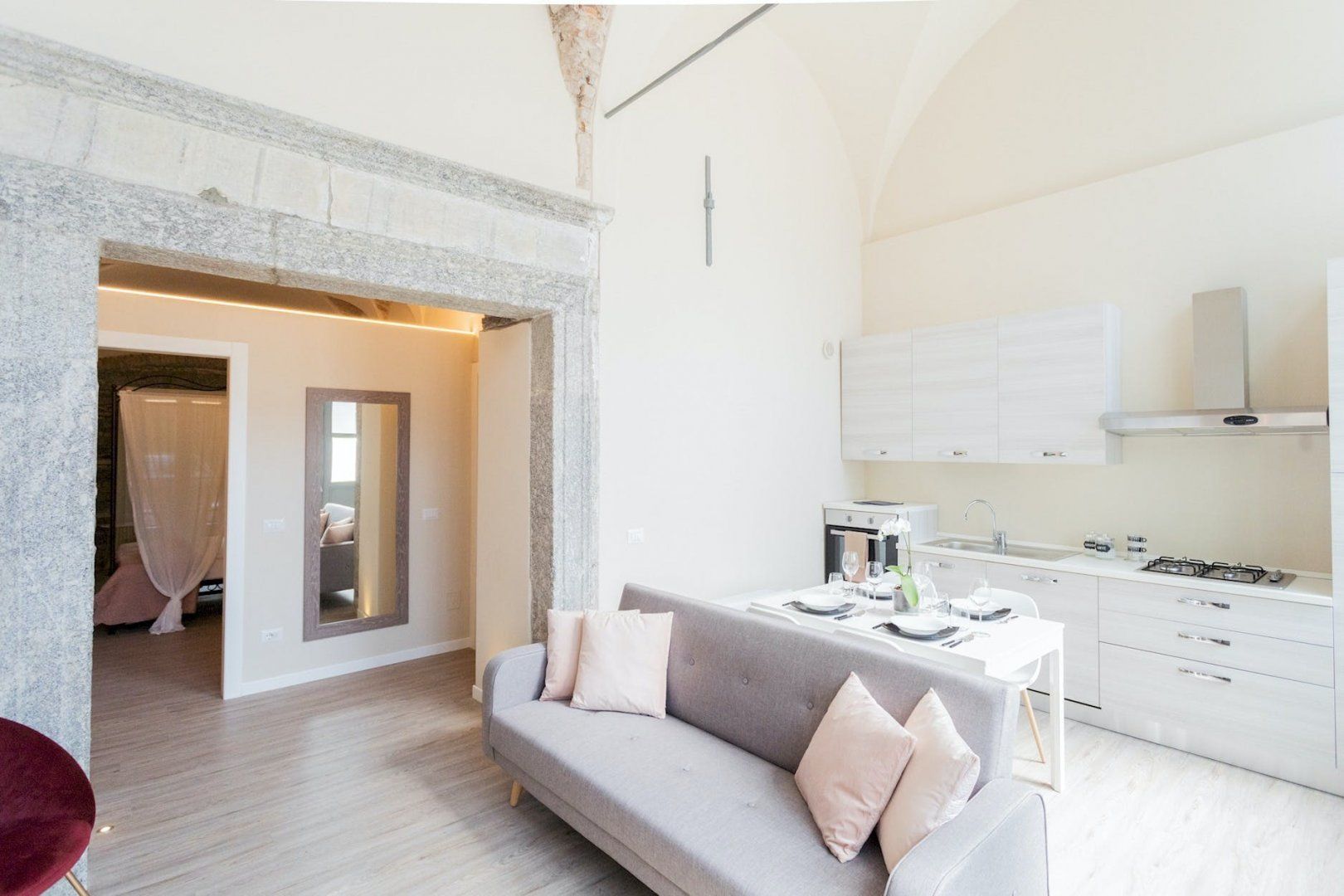 Located in the city centre and with private parking – very rare in these parts – this apartment is in the perfect spot for exploring Como. The city’s compact size means all must-sees can be reached by foot, so pack your walking shoes and make sure you put the Gothic cathedral, funicular railway, and lakeside promenade on your itinerary. The home itself is a practical space with an open-plan living area beneath unique 15th-century ceilings, a small kitchenette, and a Jacuzzi bathtub. While a third guest can be accommodated on a sofa bed, we think this place is best suited to a couple or solo traveller.