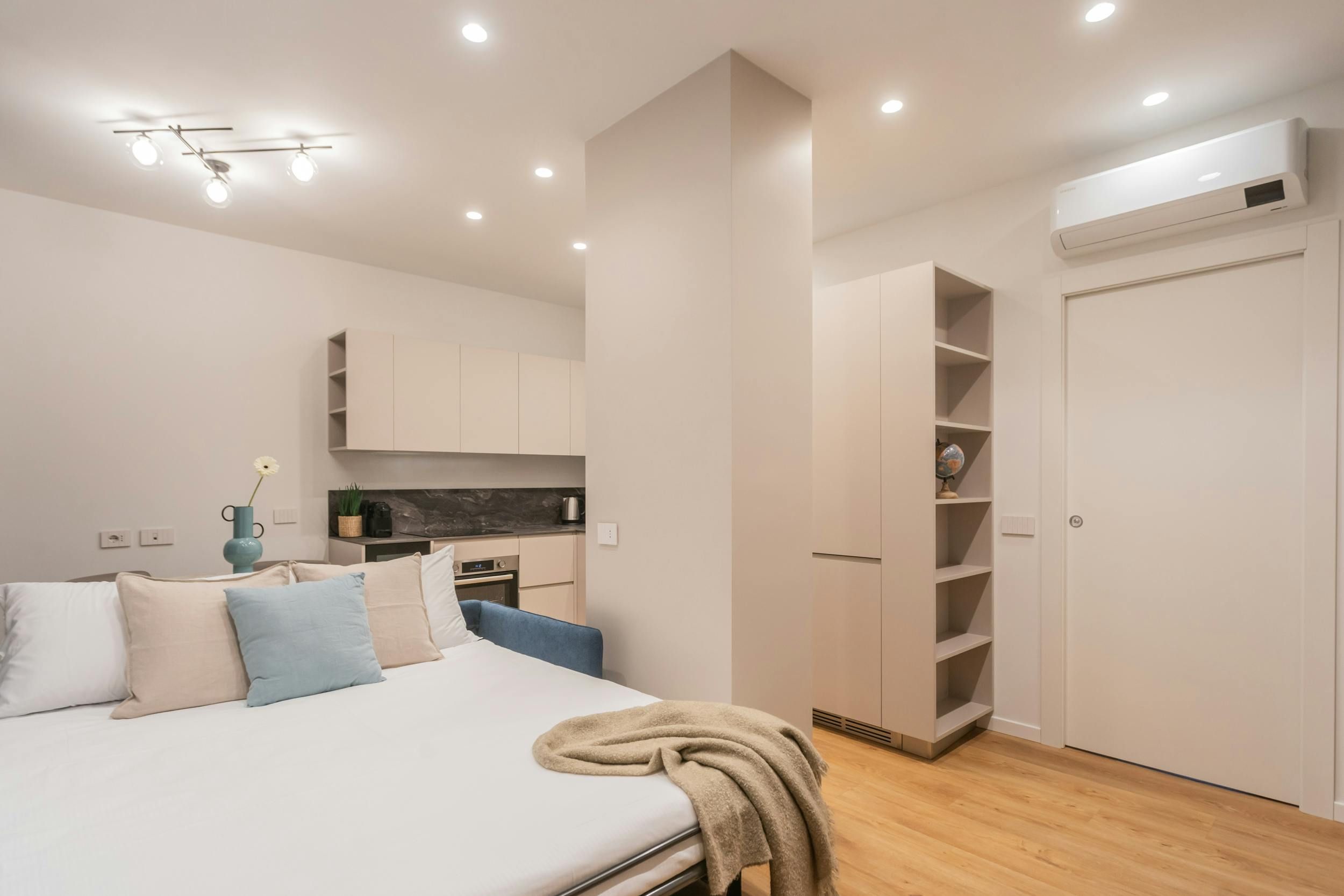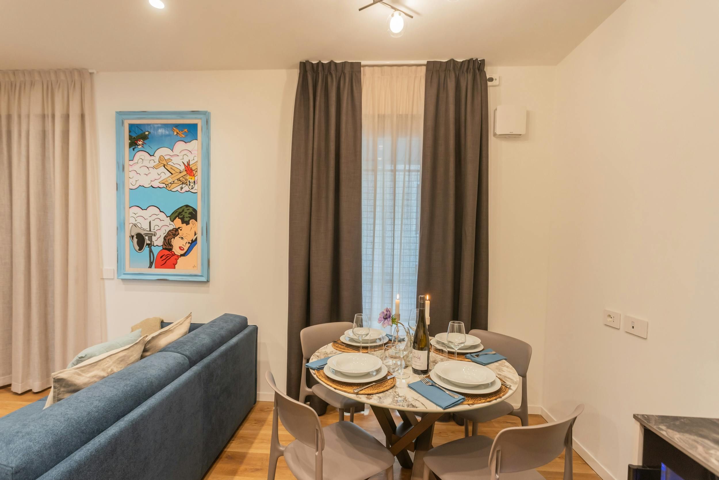Visiting Lake Como is always a good idea. Staying here, you’ll be ten minutes from the shores of the lake so you can easily enjoy a refreshing paddle or hop aboard a ferry to visit nearby Cernobbio. The cathedral is also only ten minutes away, with shops and restaurants nearby. The apartment is a practical, fuss-free base, with a well-equipped kitchen and one bedroom. At full occupancy, two guests will sleep on a sofa bed in the living, dining, and kitchen space, which limits privacy – we think a guest count of four is better suited to a family rather than friends or colleagues.