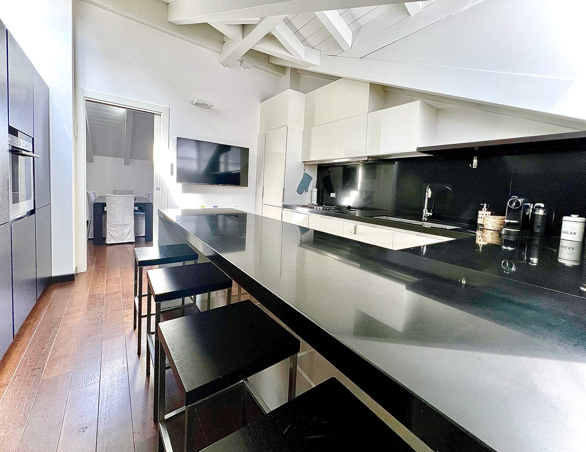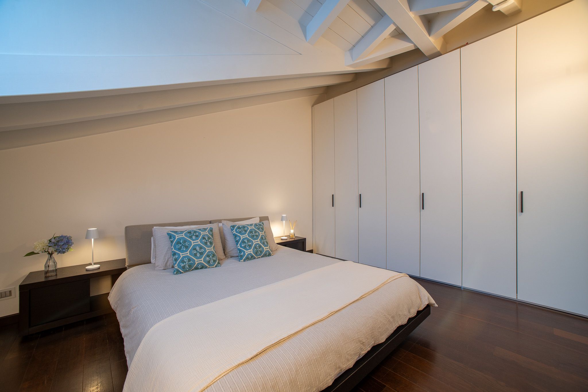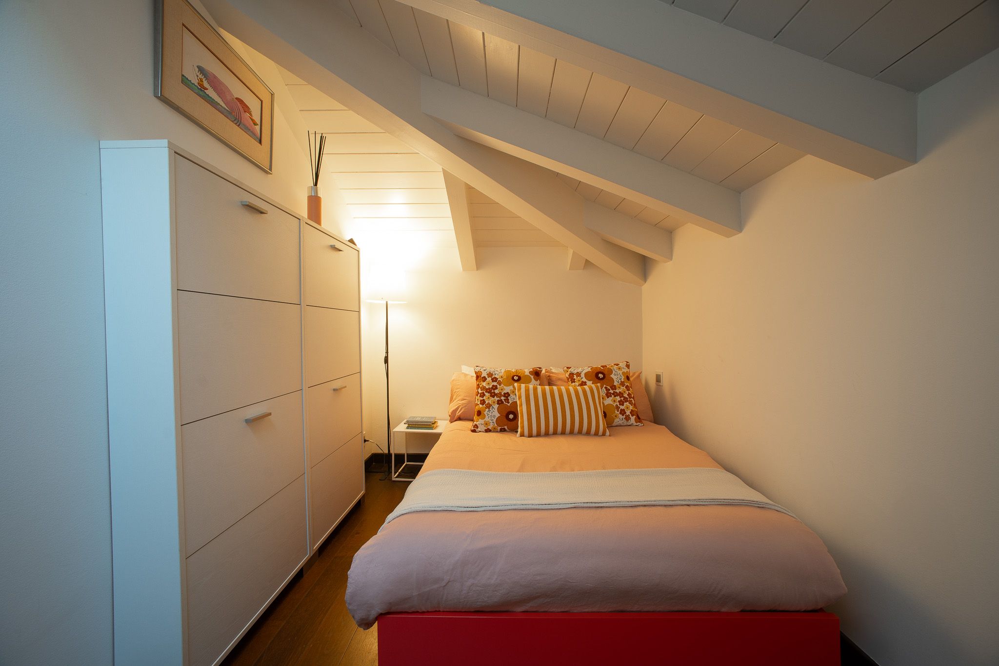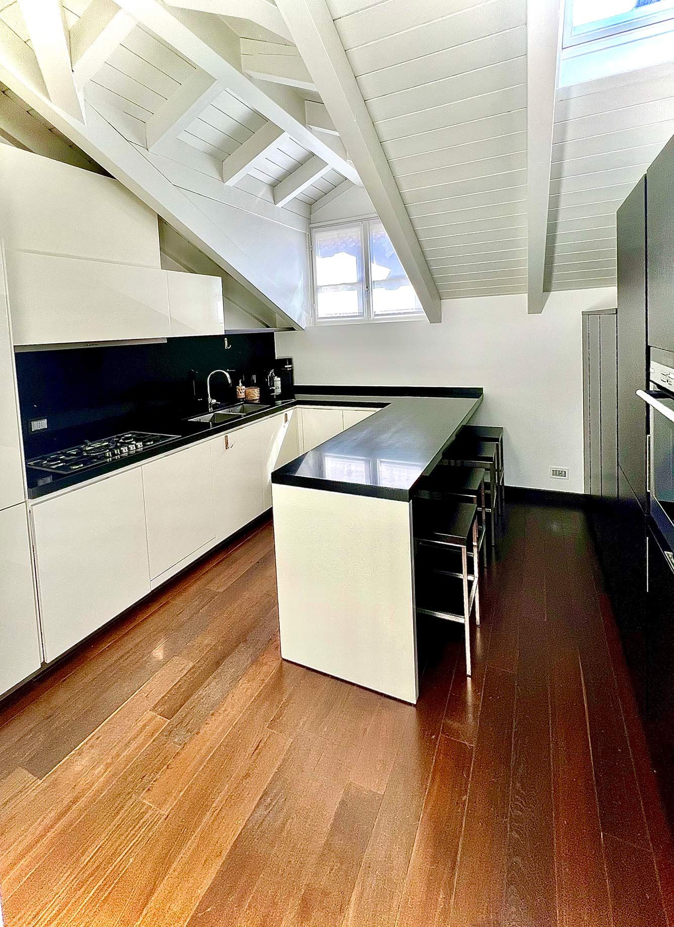 With the shores of Lake Como only five minutes up the road, this good sized apartment boasts an exceptional location to go with its classy interior design. Ideal for couples or solo travellers – although there is room for a third guest in its second bedroom – this home makes good use of its attic setting to incorporate a sleek living room and dining area, as well as a bathroom with its own corner bathtub equipped with jacuzzi jets. With the delights of Como on your doorstep, and both its train station and ferry terminal just ten minutes away, you'll also be utterly free to explore the wonders of the region – and wholly comfortable when you get back home.