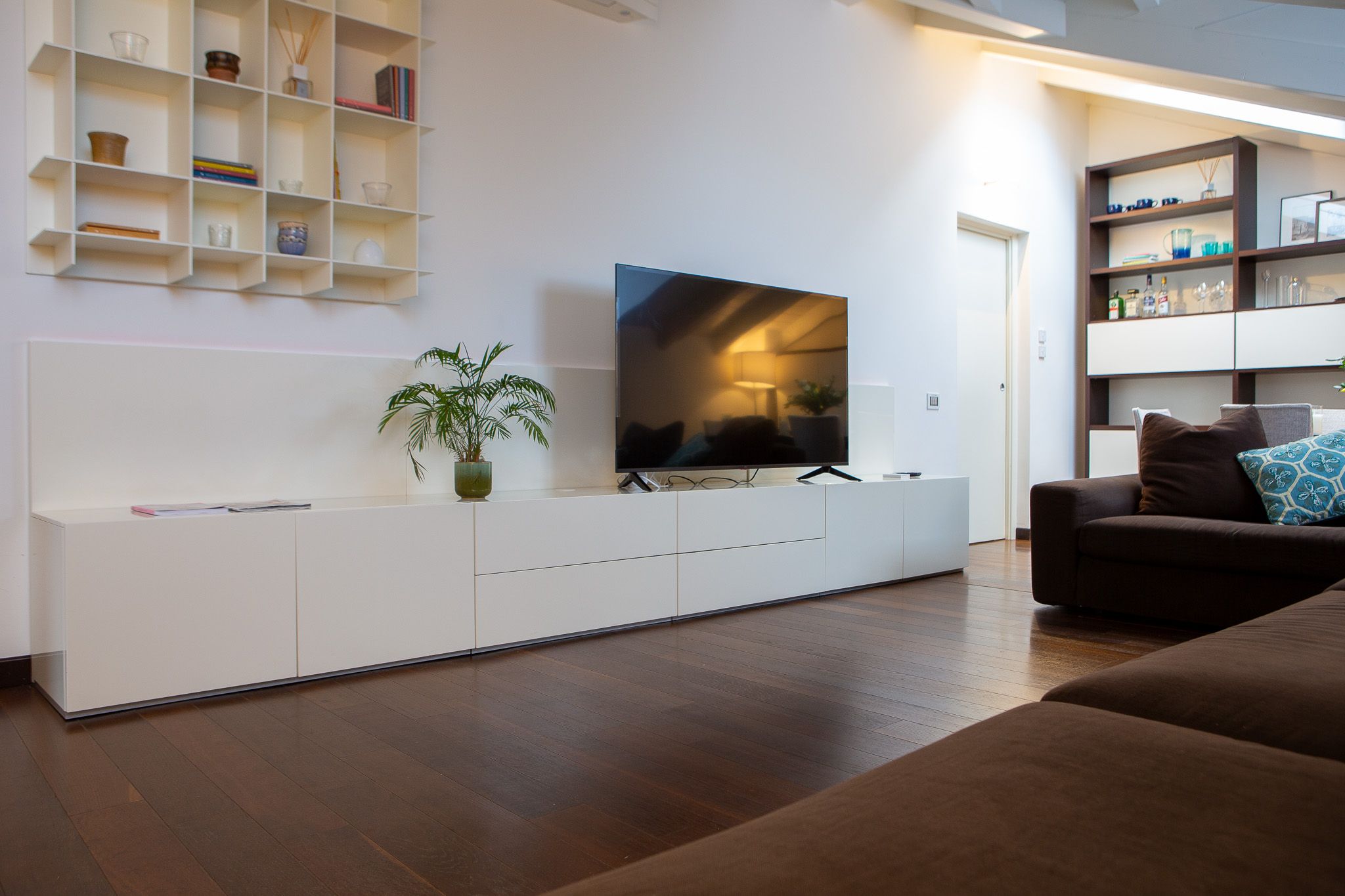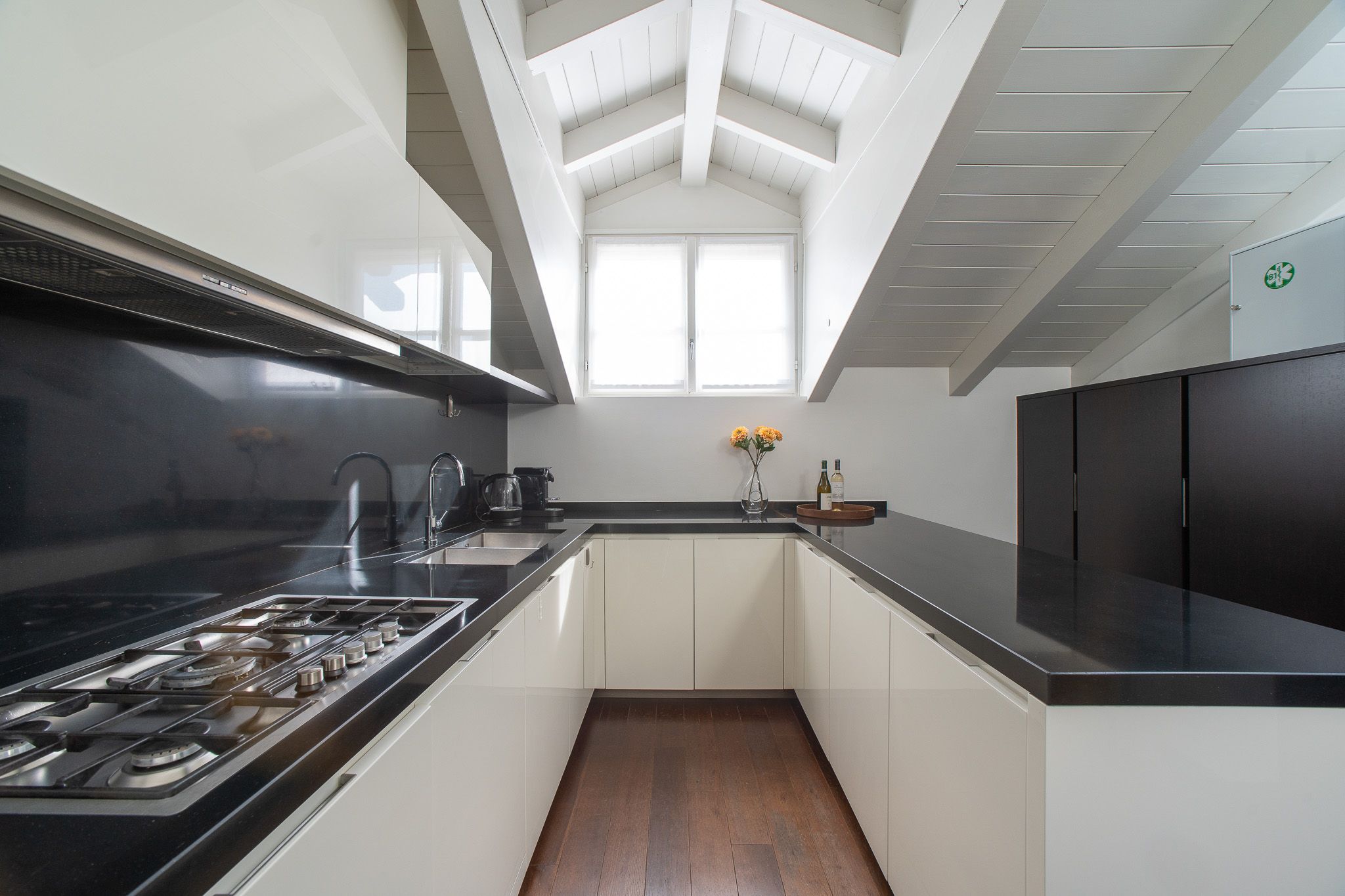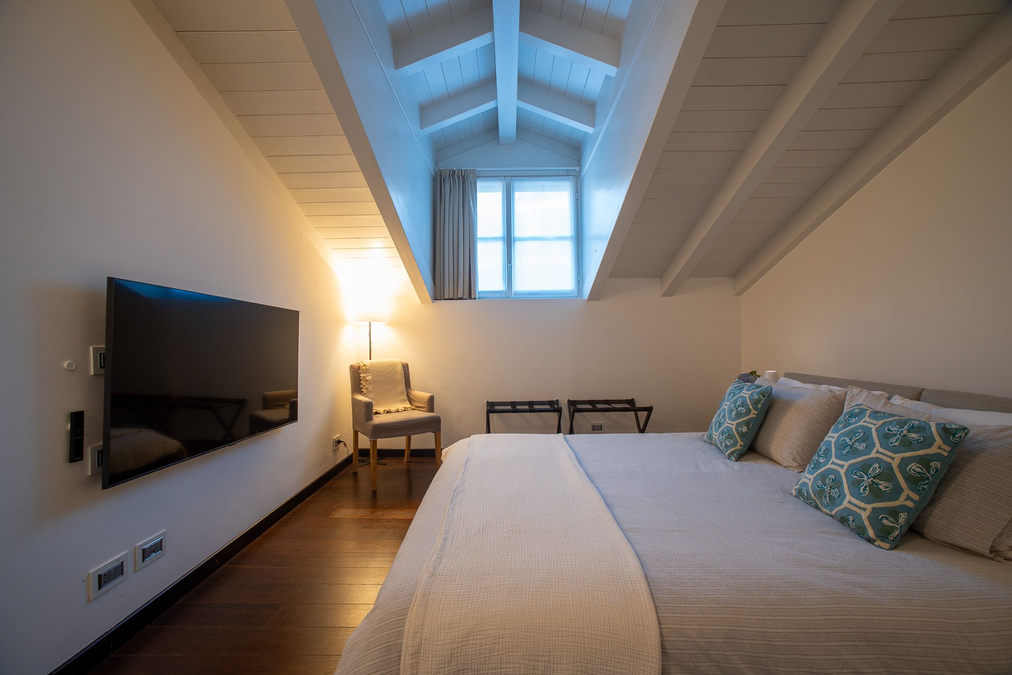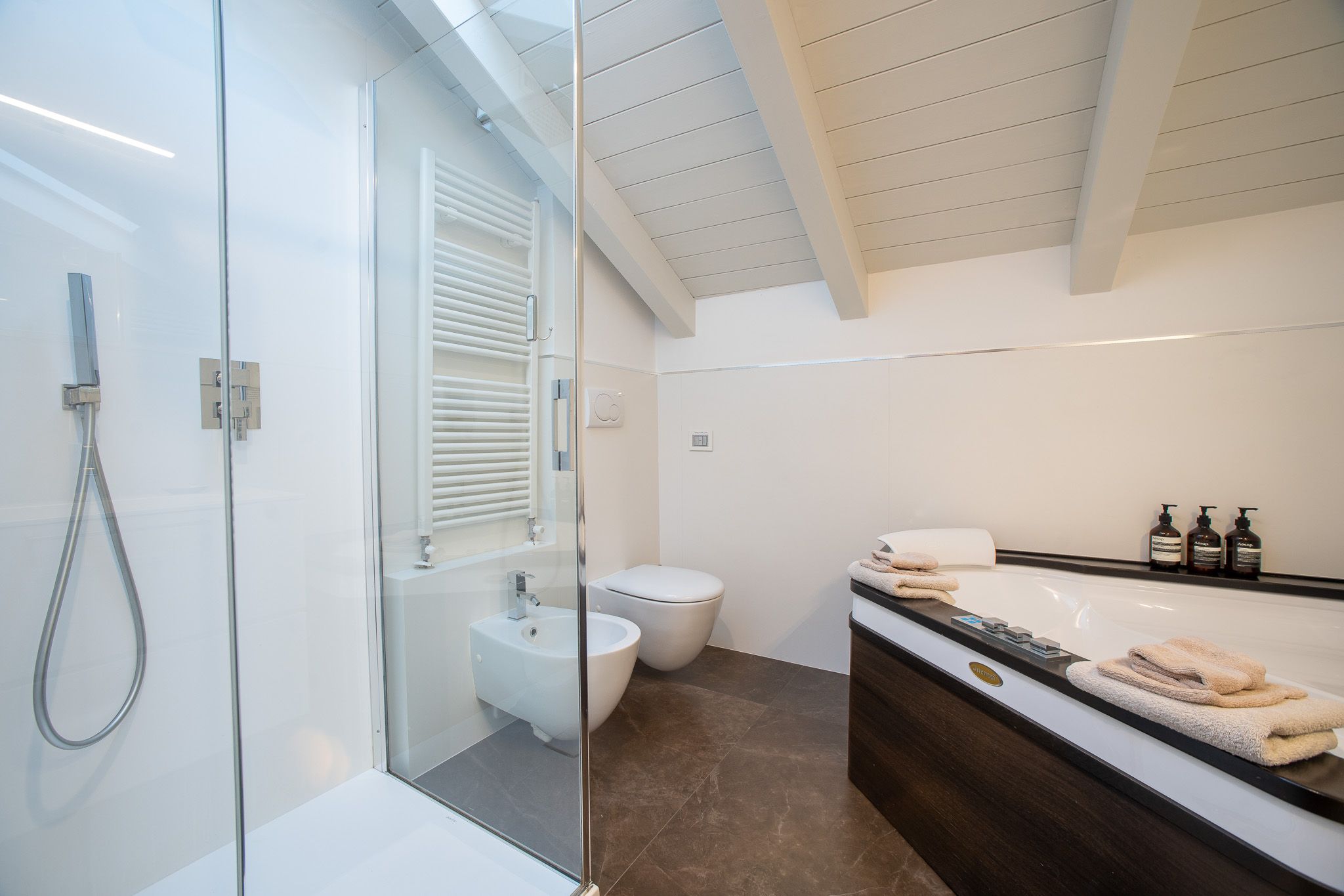 With the shores of Lake Como only five minutes up the road, this good sized apartment boasts an exceptional location to go with its classy interior design. Ideal for couples or solo travellers – although there is room for a third guest in its second bedroom – this home makes good use of its attic setting to incorporate a sleek living room and dining area, as well as a bathroom with its own corner bathtub equipped with jacuzzi jets. With the delights of Como on your doorstep, and both its train station and ferry terminal just ten minutes away, you'll also be utterly free to explore the wonders of the region – and wholly comfortable when you get back home.