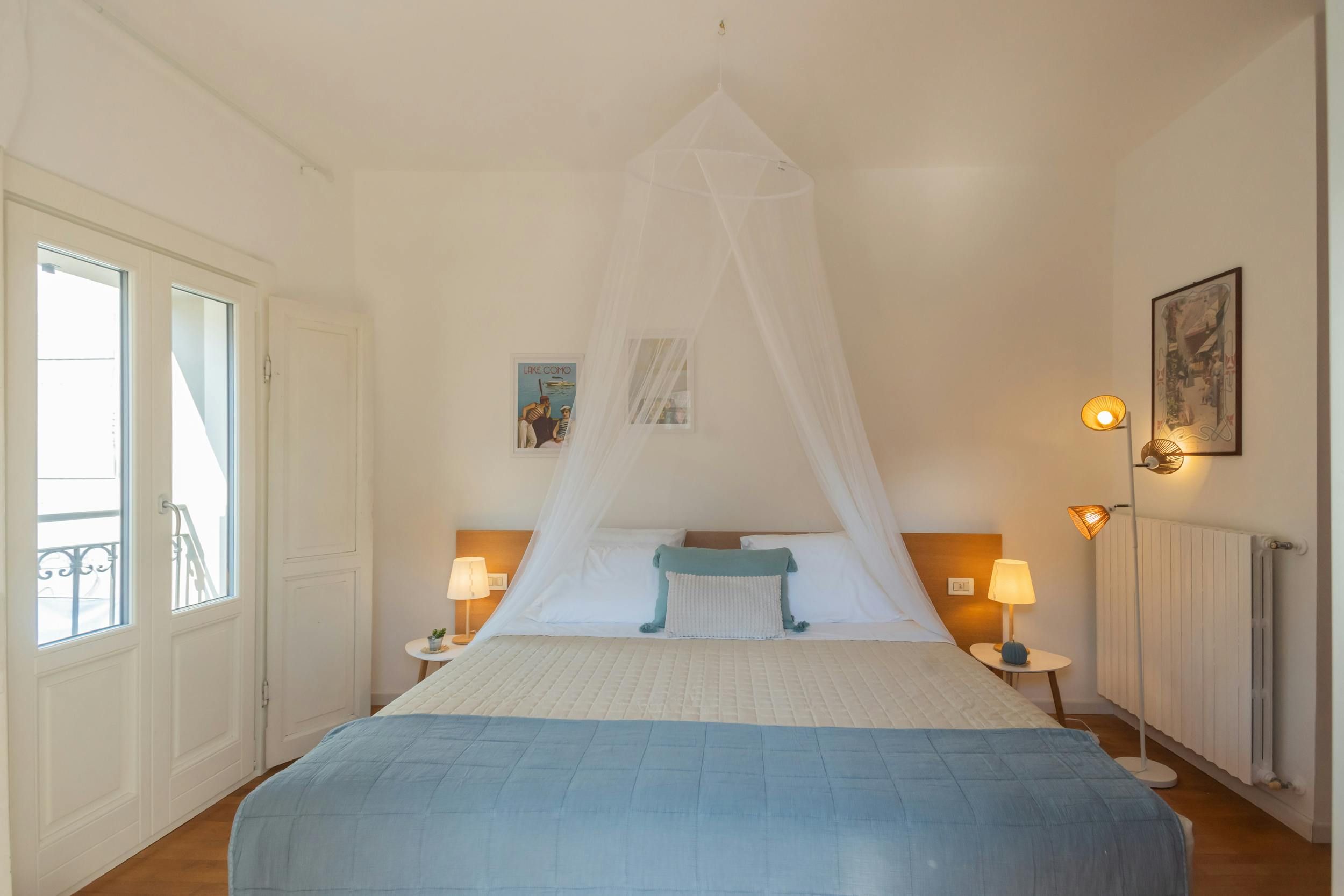 This apartment has a great, central location – it has an address right on Piazza Volta in Como. So, you’ll have restaurants and bars literally on your doorstep. It’s a short stroll to the shores of Lake Como, the Duomo di Como and the Giardini del Tempio Voltiano too. Many of the apartment’s windows have views over the piazza and the main bedroom has vistas of the lake as well. This apartment is the perfect place for an unforgettable stay in Como.