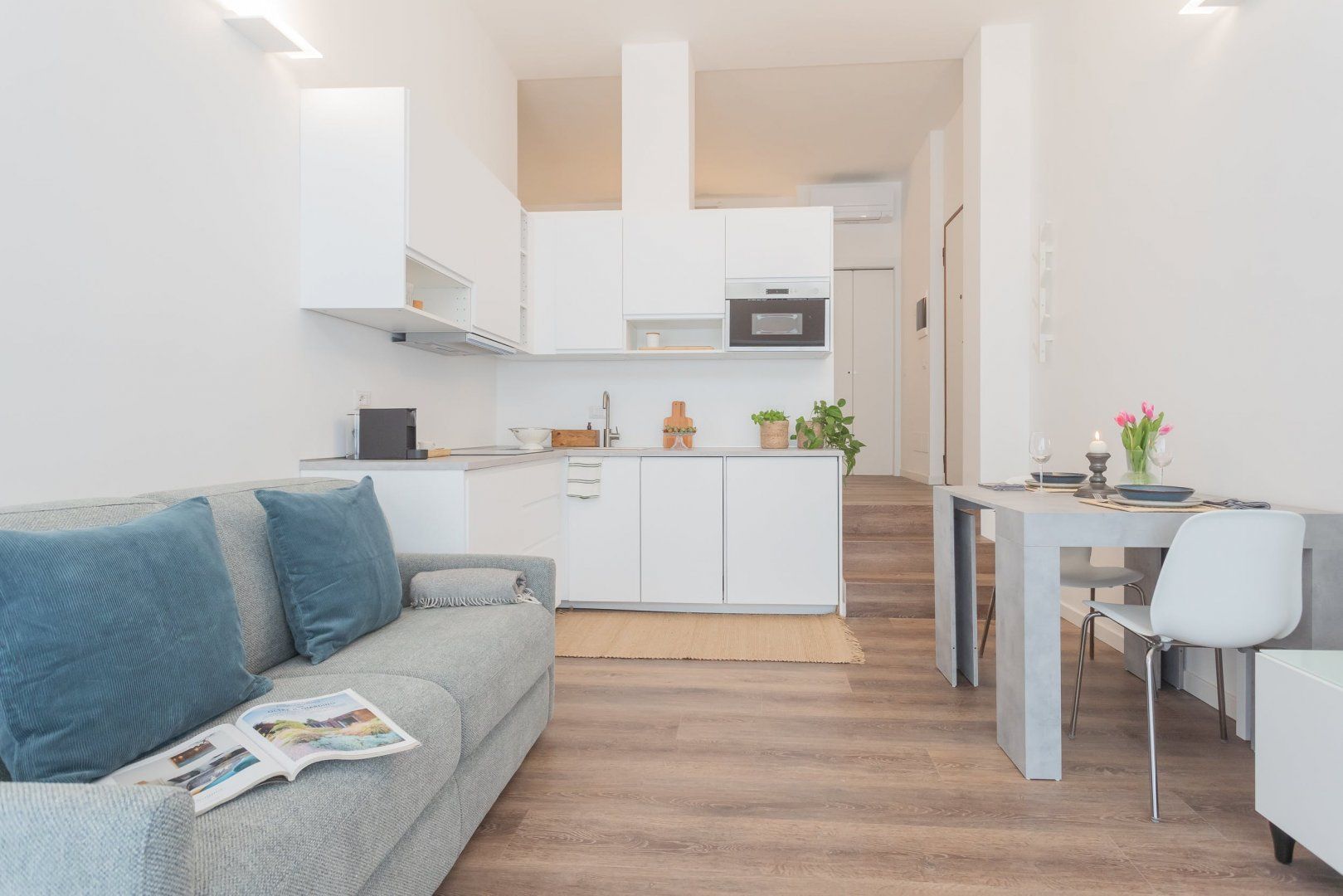 This ground-floor apartment is ideally located in the heart of Como. The Duomo is a couple of hundred metres away, and the city’s famous lake is reached easily by foot. Not to mention there is no shortage of bars and restaurants on your doorstep. The home is functional yet comfortable and suits any couple or solo traveller. The sofa bed in the living space sleeps an additional two guests, but as access to the bathroom is via the bedroom, this set-up may not suit those who like privacy.