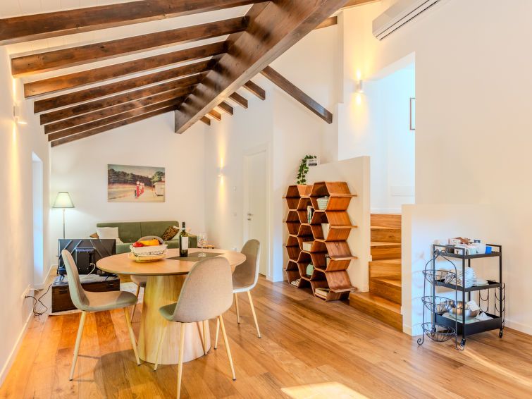 "Giada", 2-room apartment 60 m2, on the upper ground floor. Fully renovated in 2024, comfortable and modern furnishings: open living/sleeping room with 1 double sofabed, dining table and TV (flat screen), air conditioning. 1 double bedroom with air conditioning. Open kitchen (oven, dishwasher, 4 induction hot plates, toaster, kettle, microwave, freezer, electric coffee machine, Capsules for coffee machine (Nespresso)).