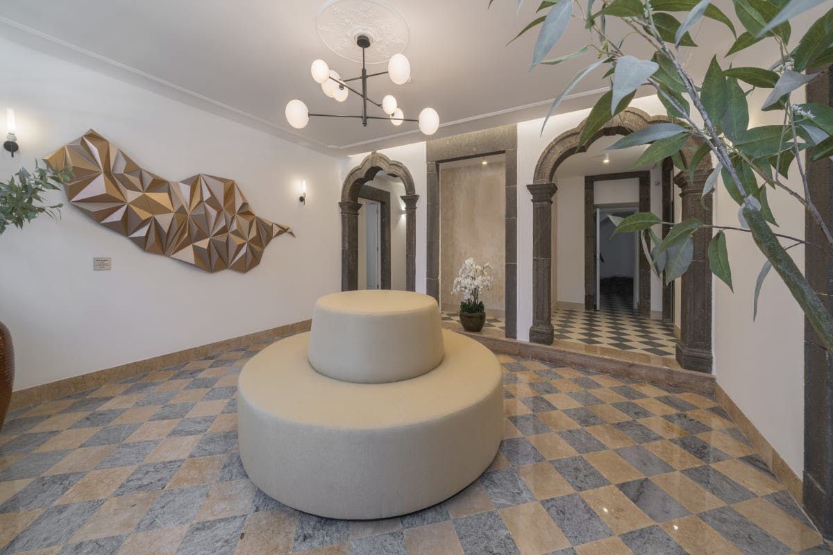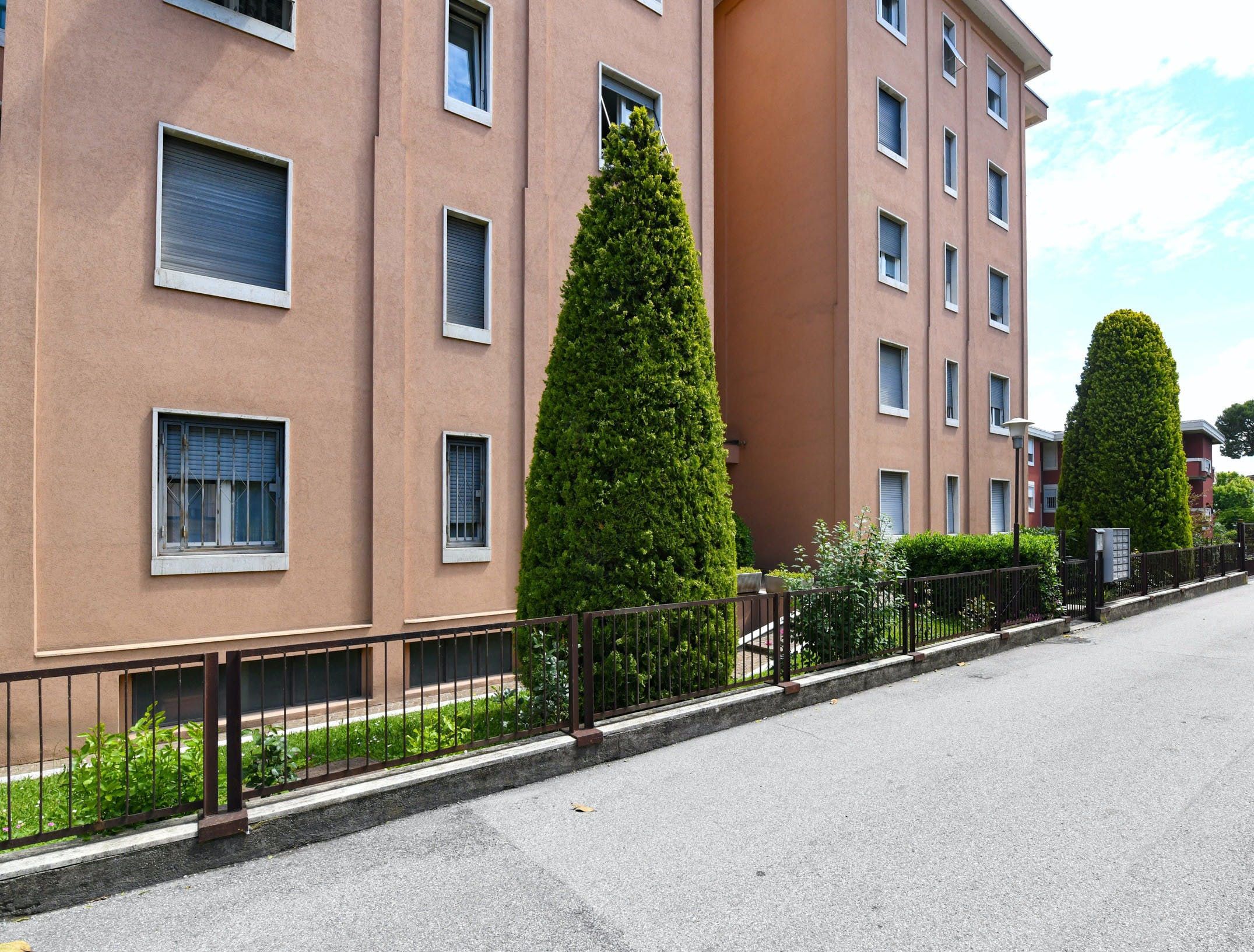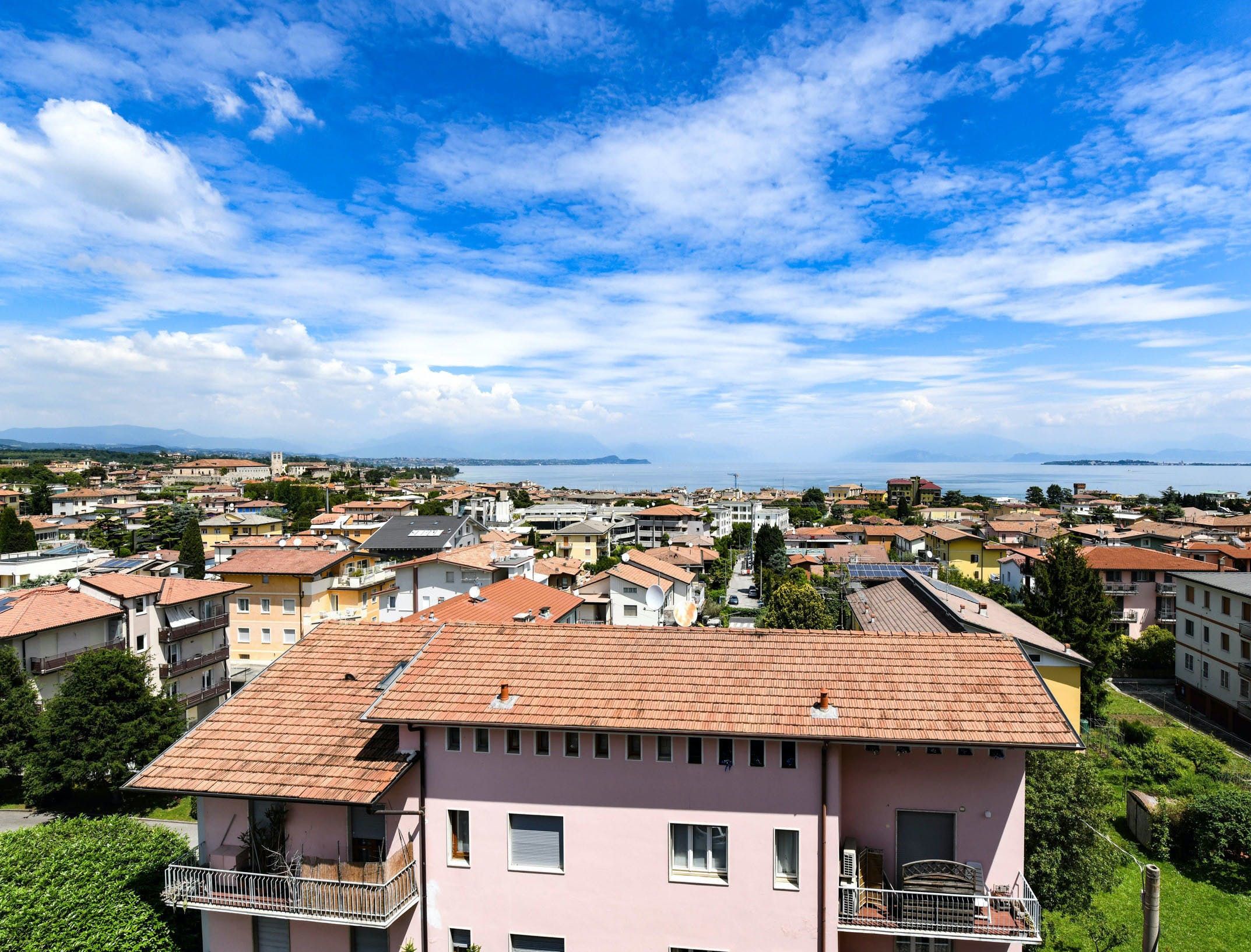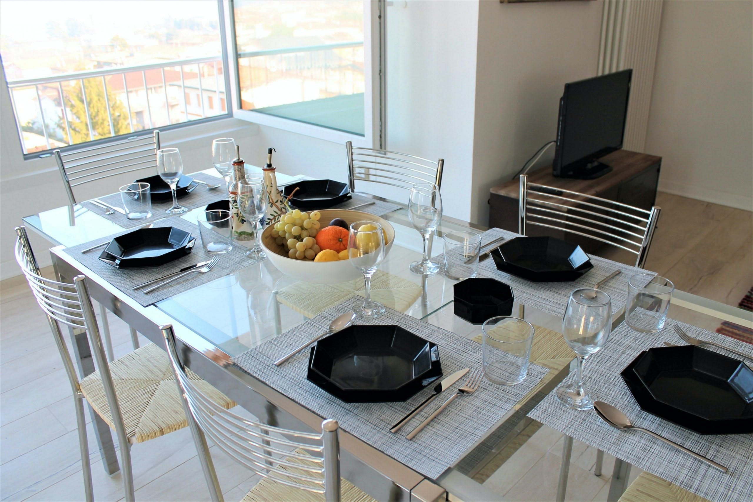 The first thing that grabs you as soon as you step inside is the view from the living area’s big windows. The vista of red-roofed houses leading to the shores of Lake Garda takes pride of place as if it’s a work of art hanging on the wall. Lightwood floors and white walls keep things feeling bright and the glass dining table sits in a particularly sunny corner, surrounded by windows. There’s plenty of room to prep meals in the open kitchen, thanks to a wooden breakfast bar. A little, unfurnished balcony provides a space to step out and breathe in the fresh, lake air.