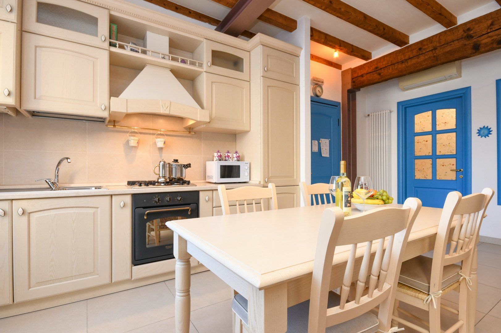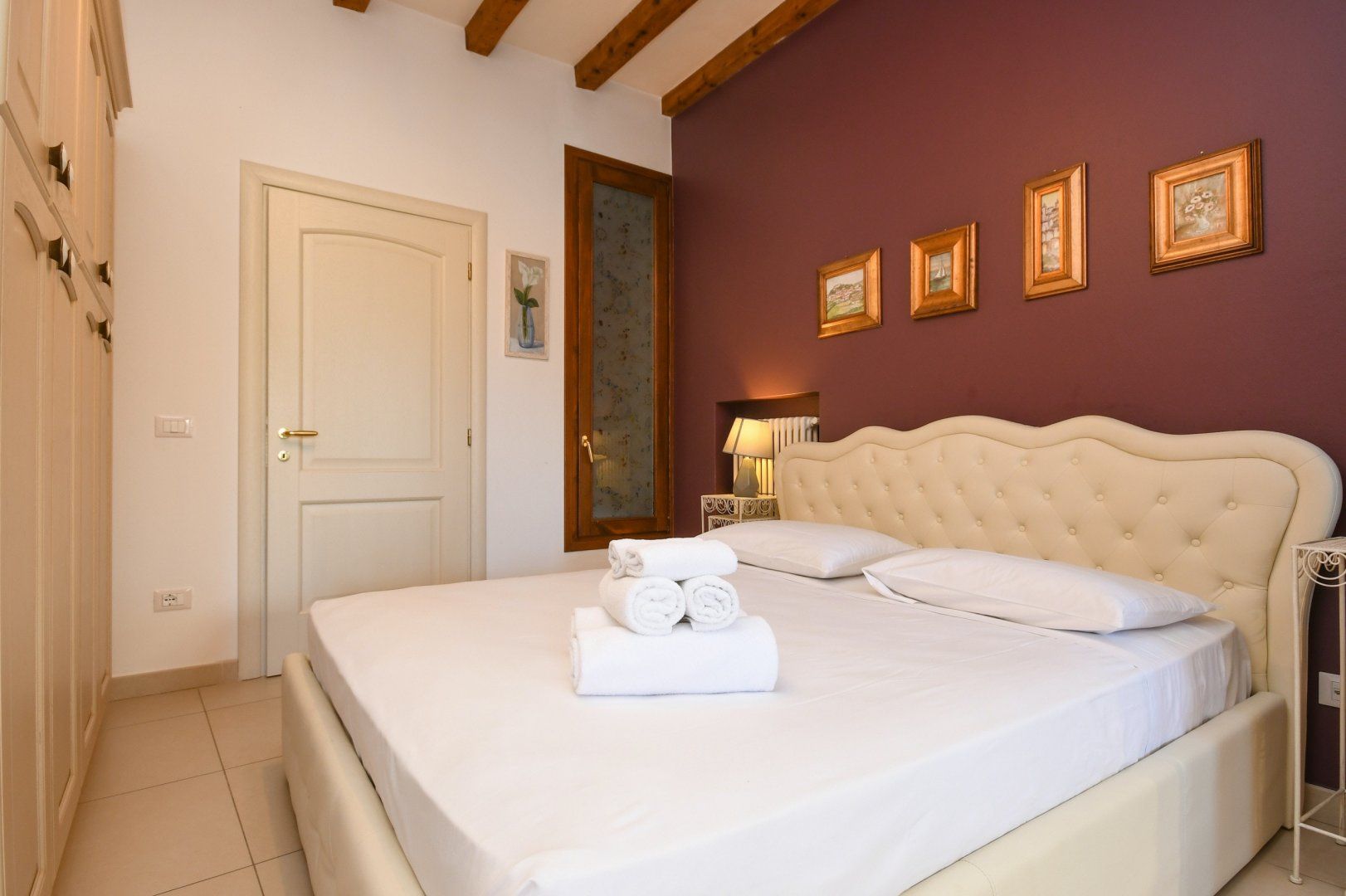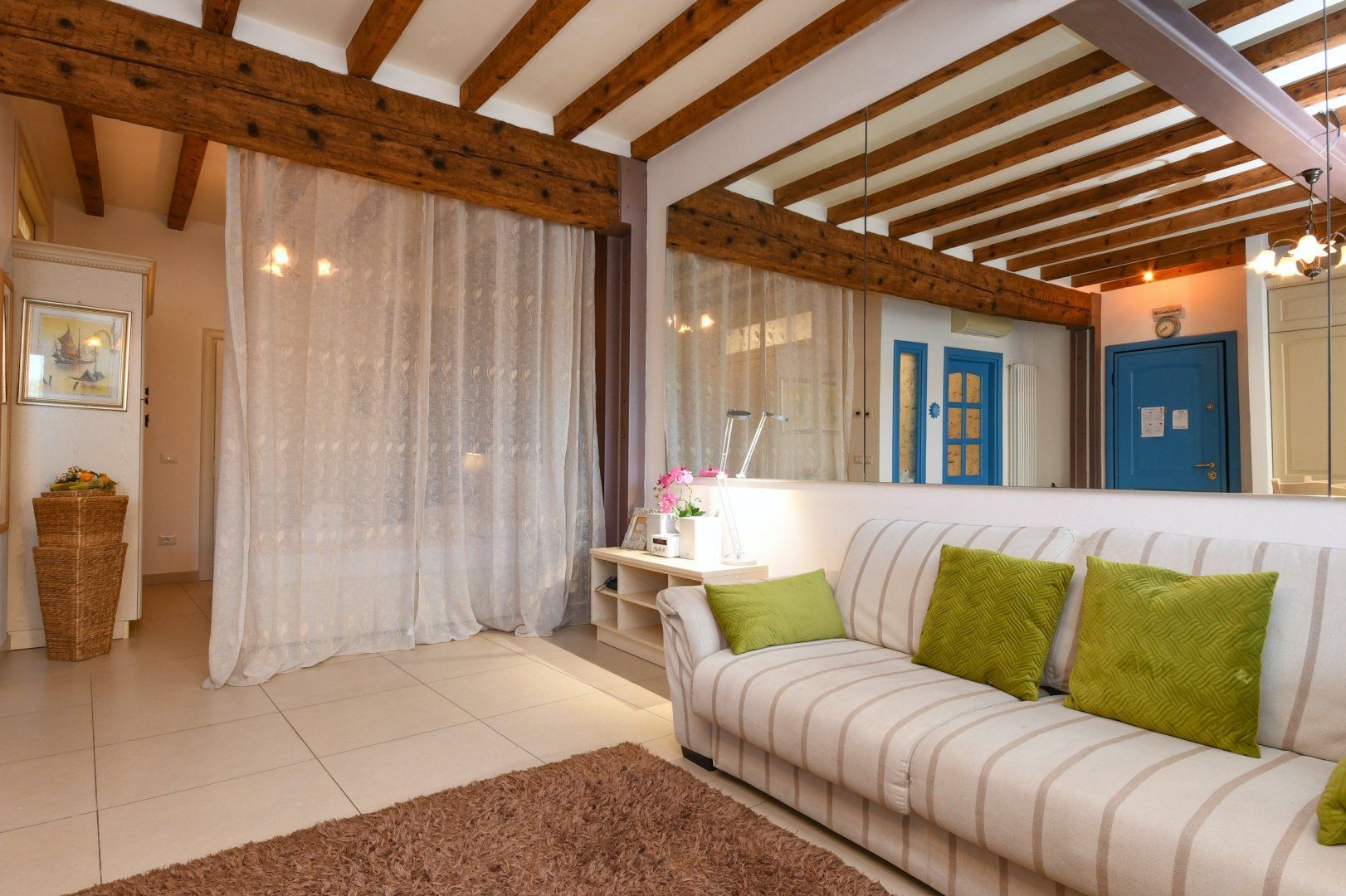 Located in the historic centre of Desenzano del Garda, directly overlooking the Feltrinelli Square with views of the beautiful Lake Garda, this second-floor apartment is waiting to be discovered. The traditional feel of the original exposed beams and natural earthy tones will make you and your four-legged friends feel instantly at home, whether you're sprawling on the comfy sofa or whipping up a light lunch in the charming kitchen area. The double bed is comfy and big enough to spread out in, which makes up for the curtain being all that separates it from the rest of the apartment.