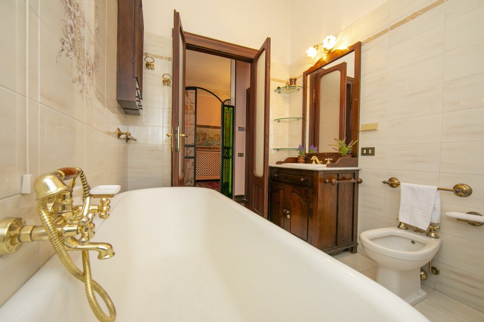Strolling up the palm-lined walkway to the crescent portico entrance when you arrive is a splendid experience and sets the tone for the rest of your stay. The luxurious design continues inside, with antique furniture, glittering chandeliers, and even stained glass details. You'll love serving up delicious home-cooked feasts in the elegant dining room – it's impossible to imagine a more fitting place for a lavish dinner party. And, outside you'll find a sparkling swimming pool where you can enjoy a refreshing dip on hot afternoons.