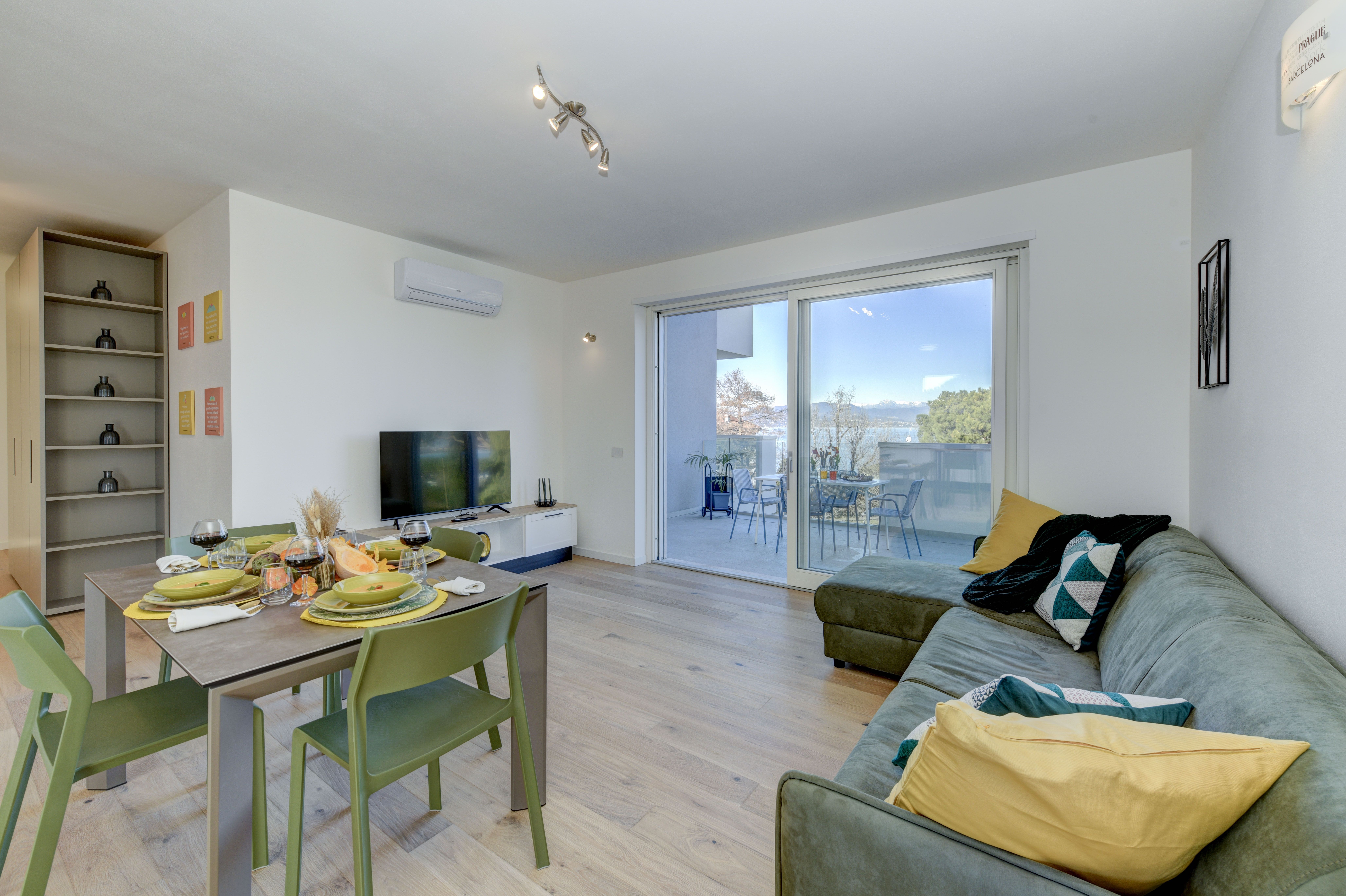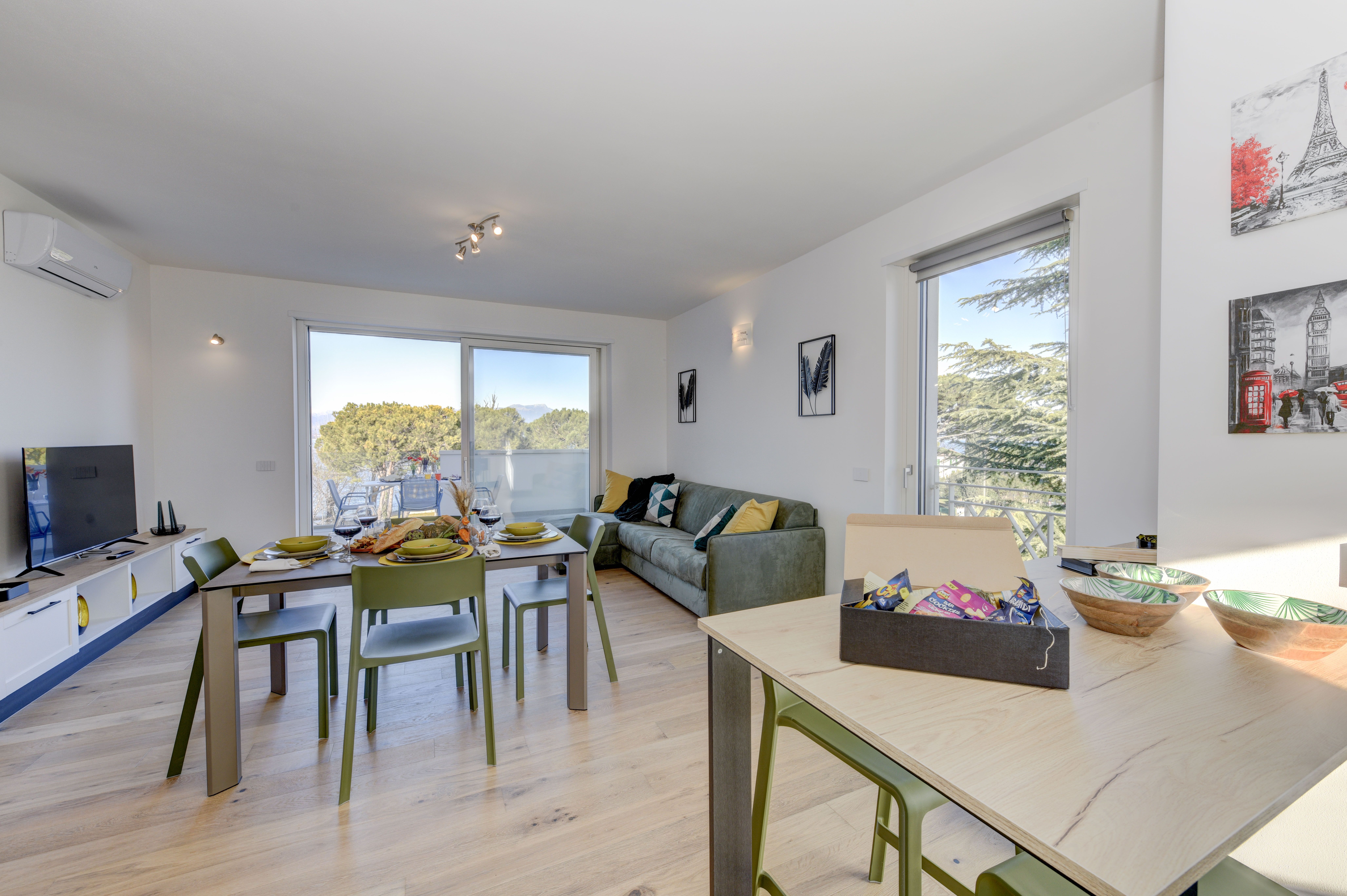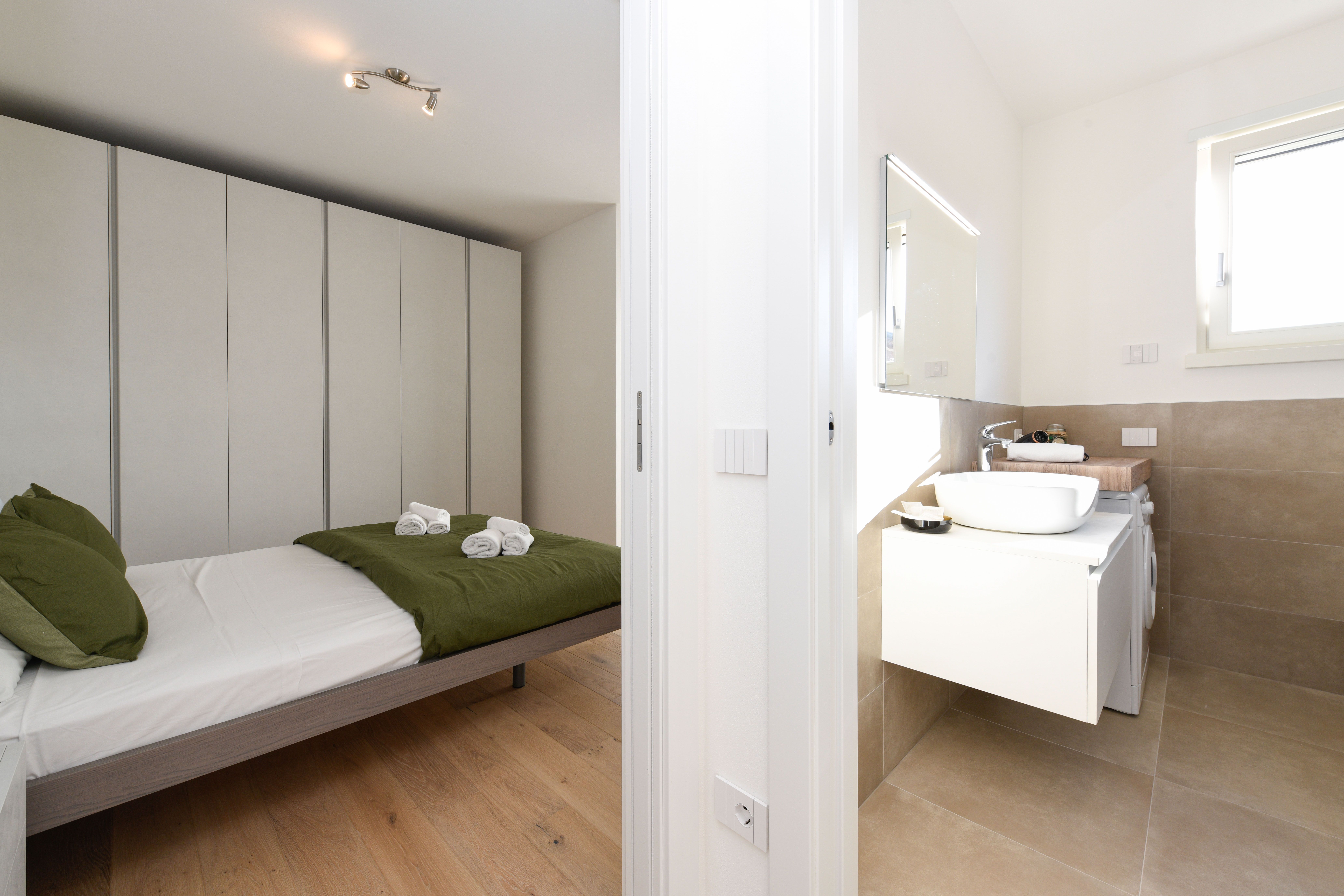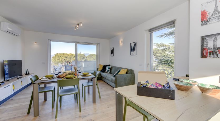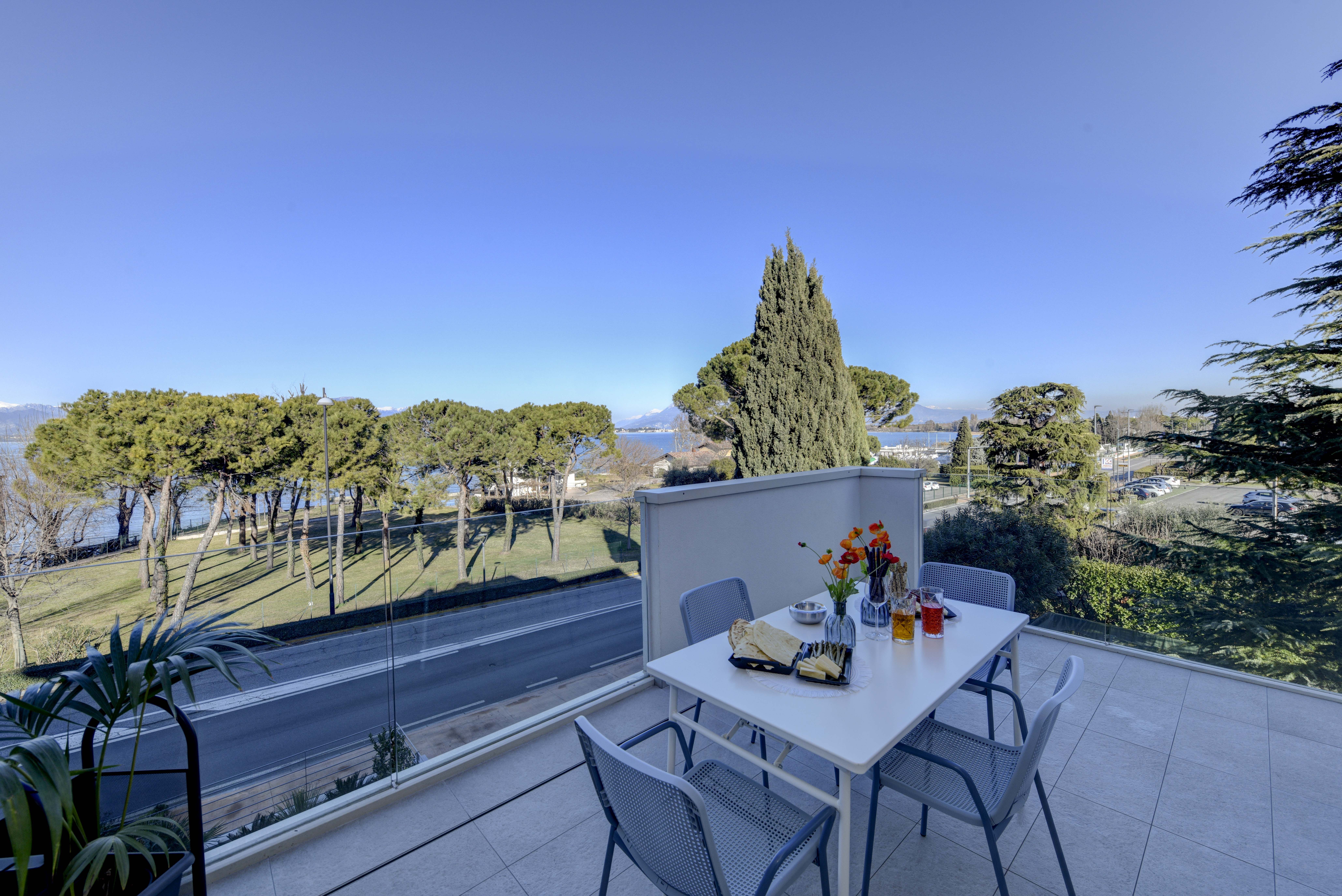 Set on the second floor of an apartment building right next to Lake Garda’s shoreline, this two-bedroom home offers both beauty and comfort. The beauty is the most obvious – the stunning view of the lake is undeniable, and it’s front-and-centre from the living room and the private balcony. In terms of comfort, this home has got you covered too – a full kitchen, a spacious bathroom, and a communal pool come together to make this place a true gem. Plus, there’s private garage parking for two cars here as well.