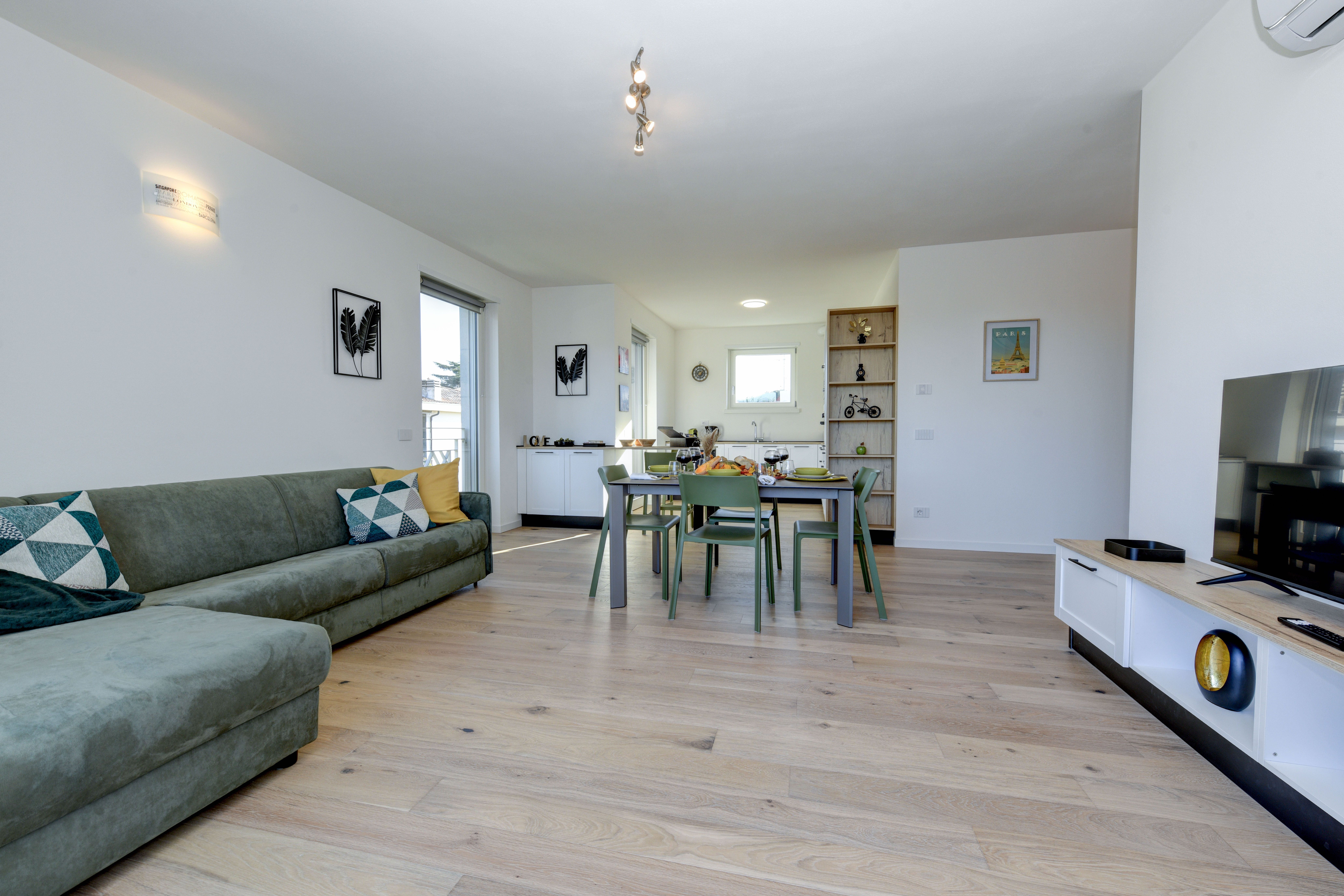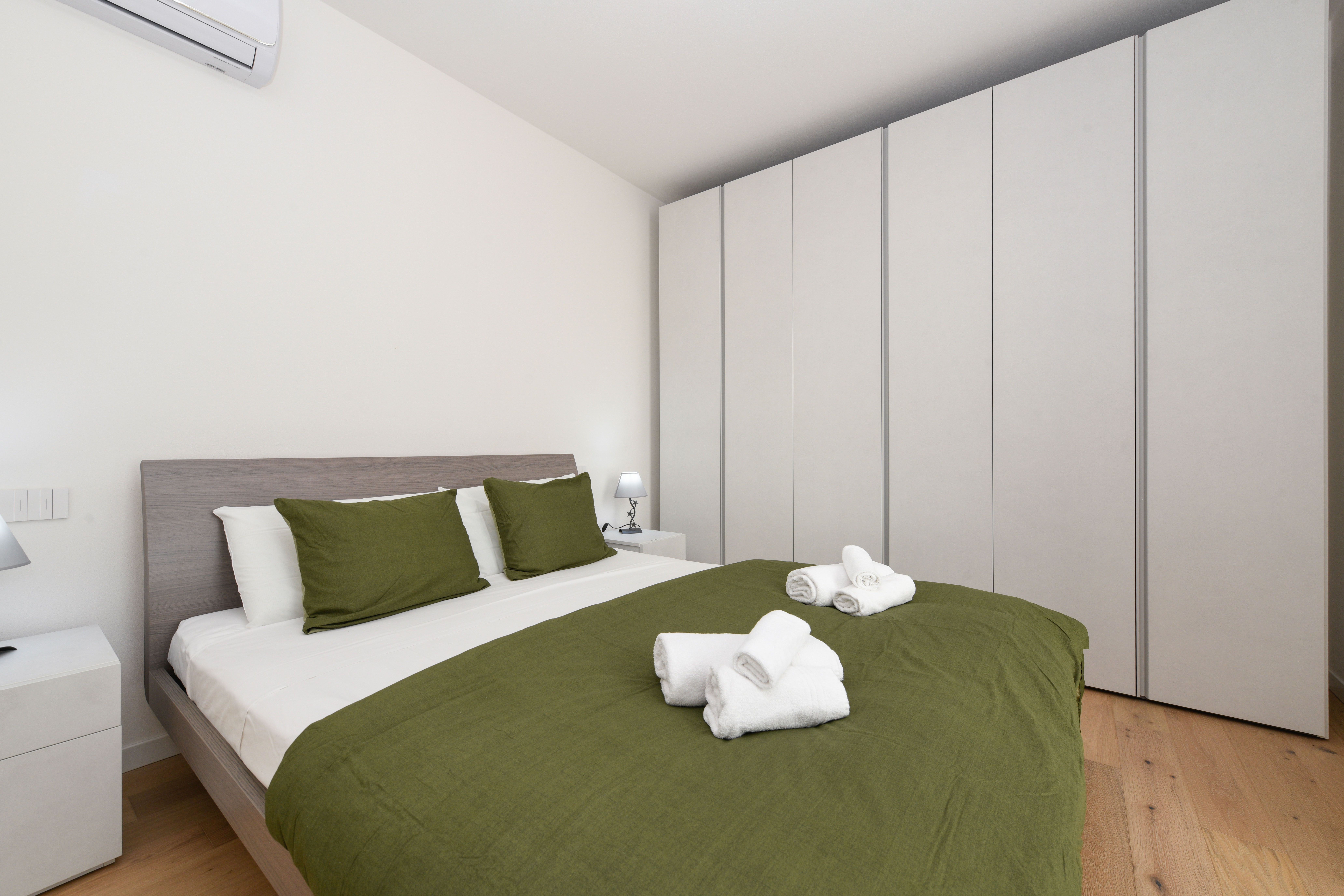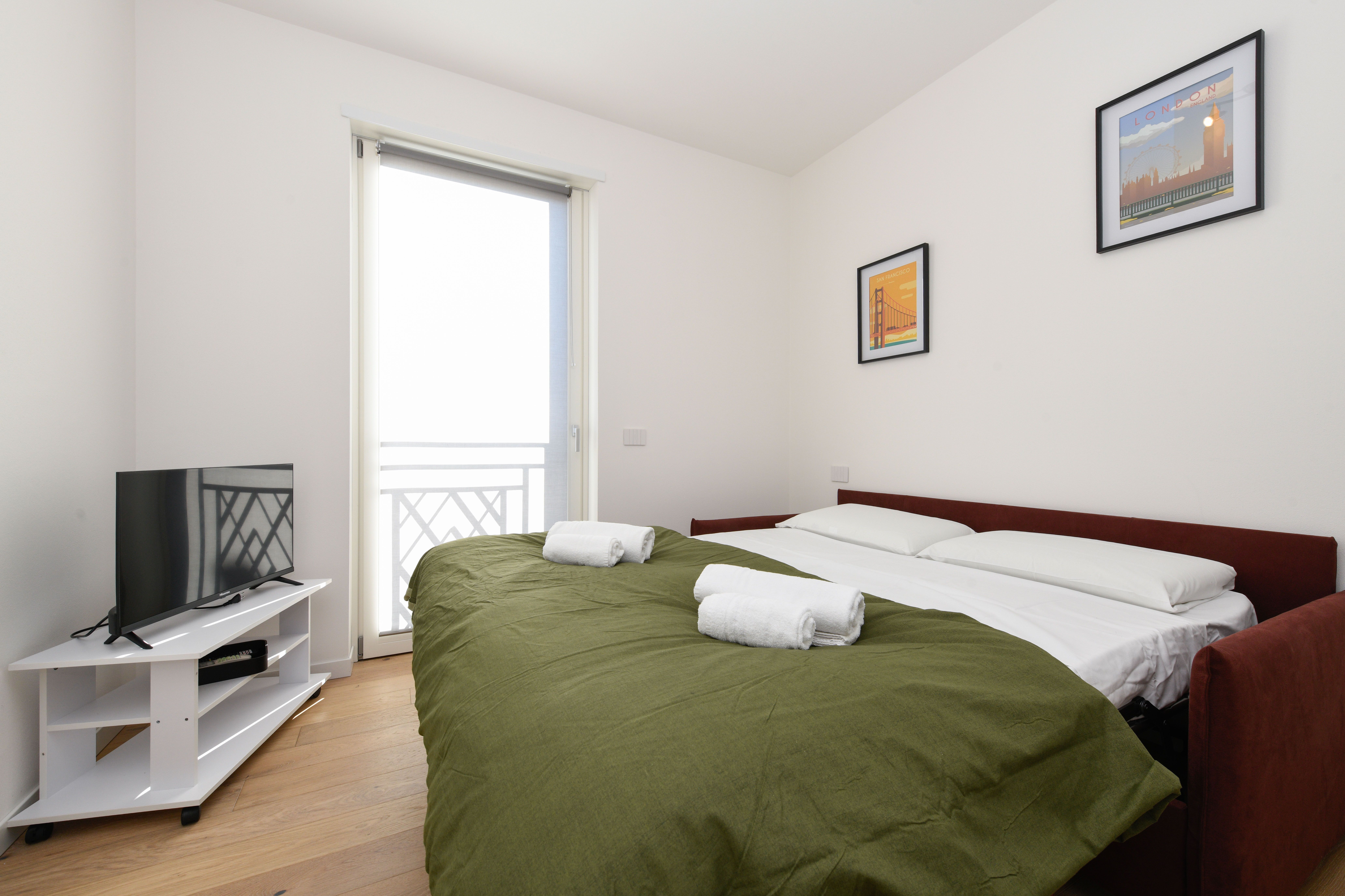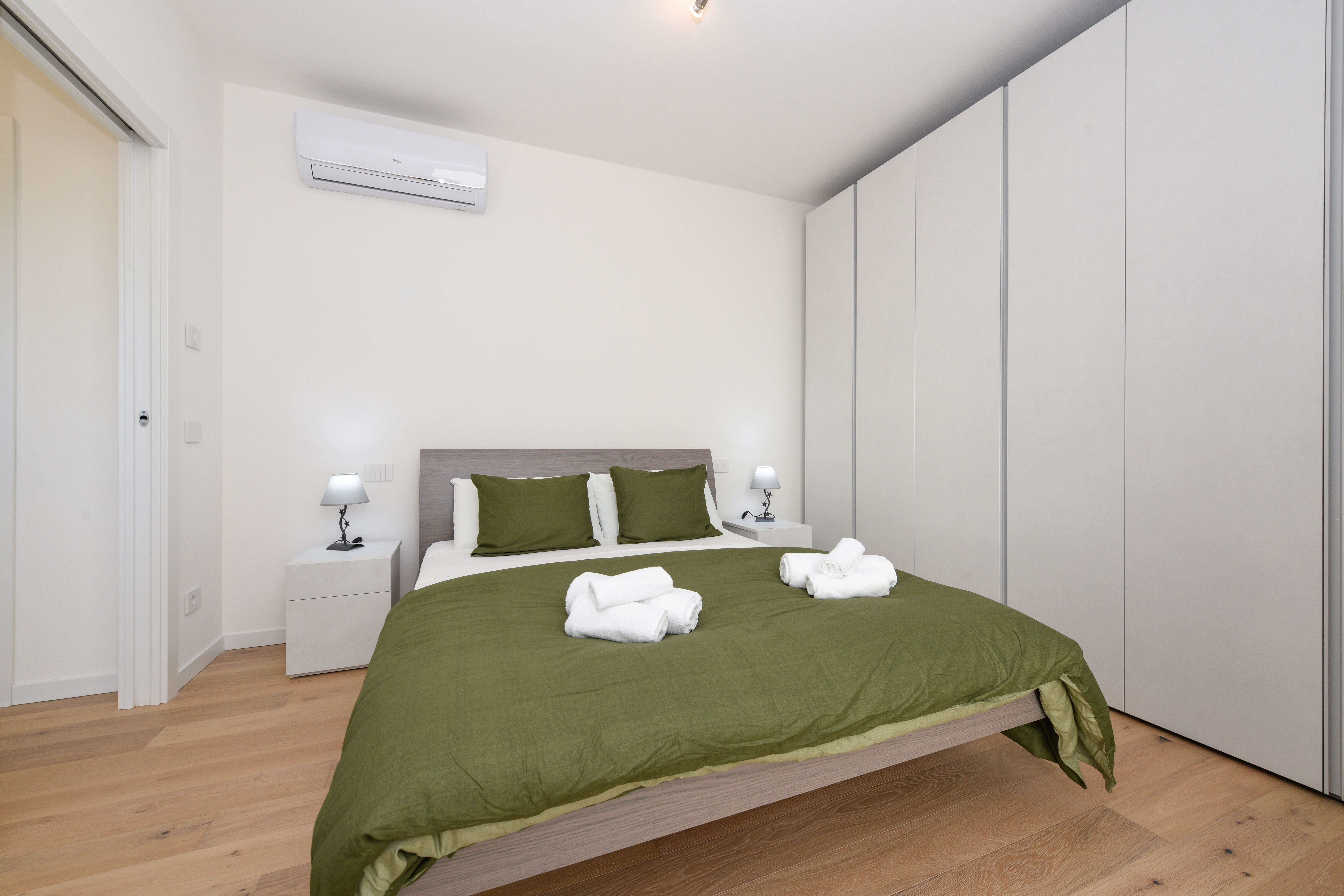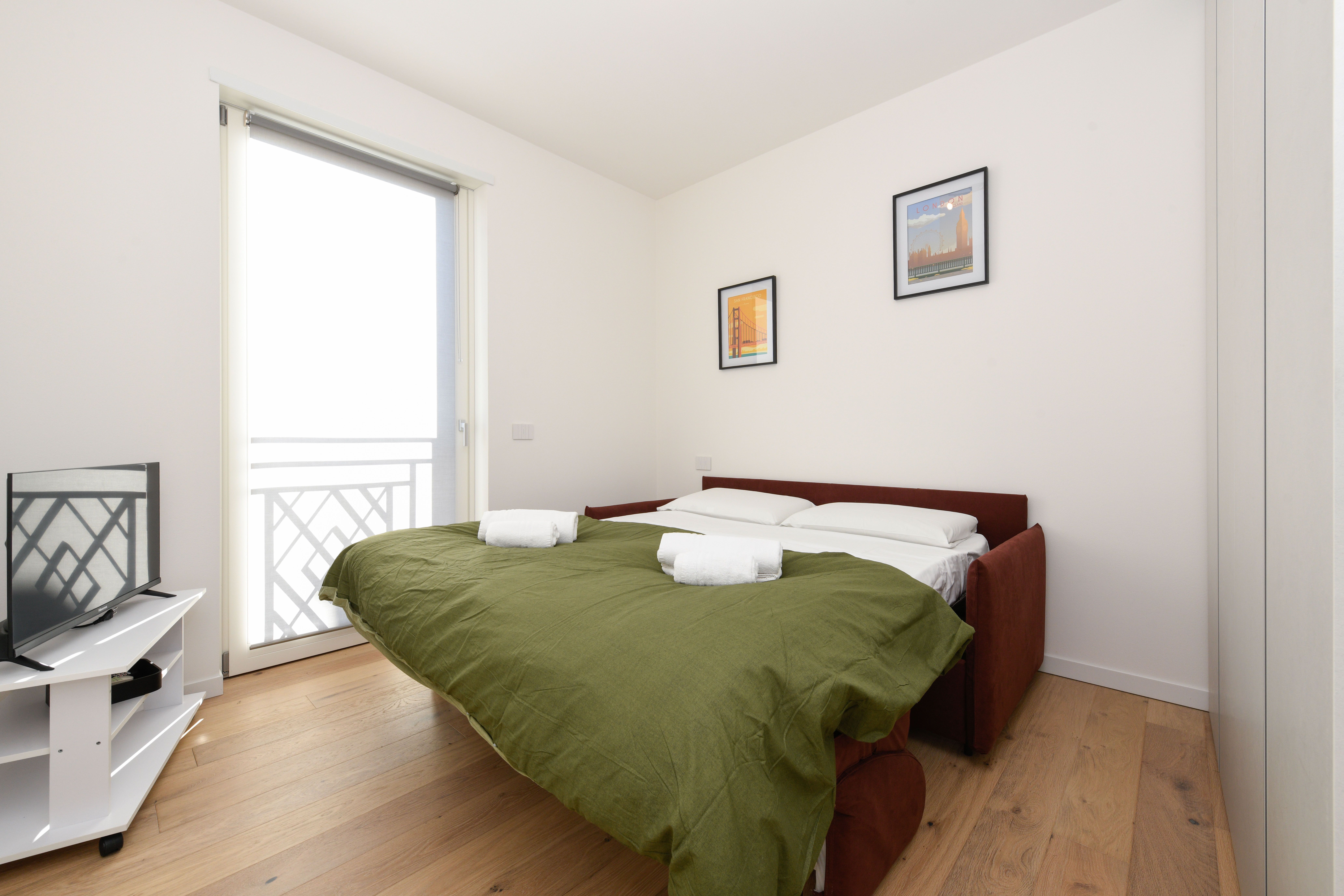Set on the second floor of an apartment building right next to Lake Garda’s shoreline, this two-bedroom home offers both beauty and comfort. The beauty is the most obvious – the stunning view of the lake is undeniable, and it’s front-and-centre from the living room and the private balcony. In terms of comfort, this home has got you covered too – a full kitchen, a spacious bathroom, and a communal pool come together to make this place a true gem. Plus, there’s private garage parking for two cars here as well.