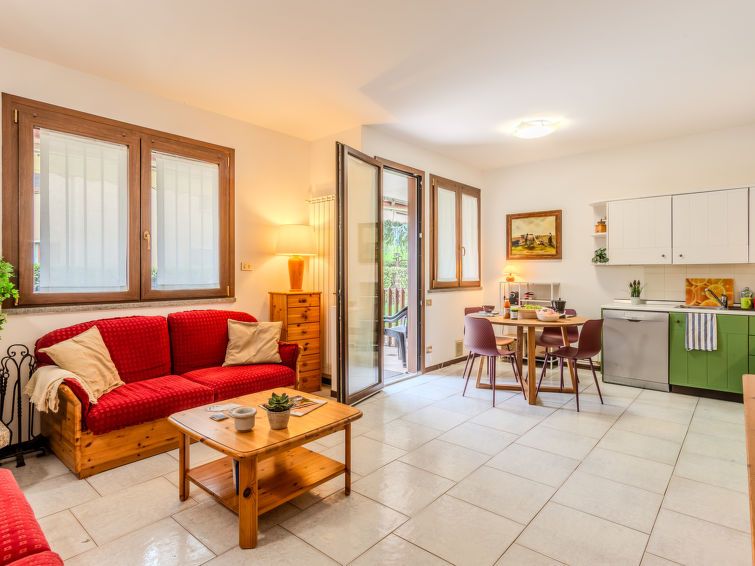 "Anna", 3-room apartment 65 m2, on the ground floor. Comfortable furnishings: living/dining room with open-hearth fireplace (only for decoration), dining table and TV. Exit to the veranda. 1 room with 2 beds and 1 pull-out bed. 1 double bedroom. Open kitchen (oven, dishwasher, 4 gas rings, toaster, kettle, electric coffee machine).